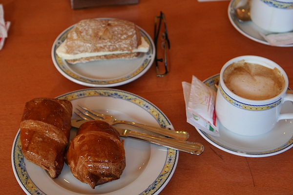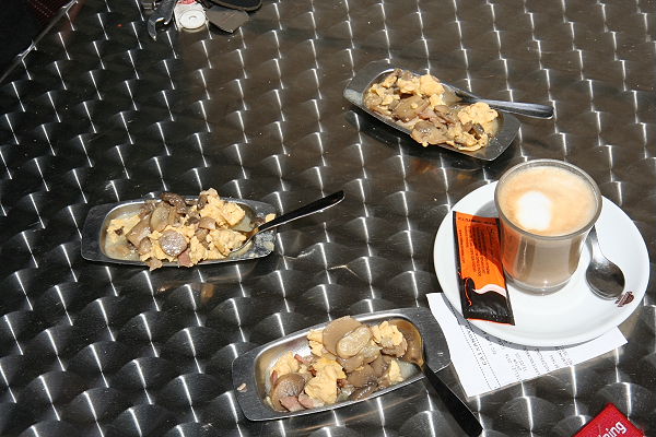 Nach einem echt spanischen Frühstück, es gab entweder Käse-Fisch-Brötchen oder Schinken-Brötchen... Na ja, ich konnte den Ober überreden für mich ein extra und nur Käsebrötchen zu servieren...