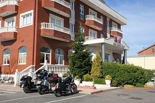 Dann gab es noch das obligatorische süße Teilchen und dann waren wir gerüstet für den Tag. Wieder luden wir unser Gepäck auf unsere Motorräder, ein netter älterer Herr rief uns noch "Gute Reise" zu und dann fuhren wir los. Zunächst ging es bis Leon.