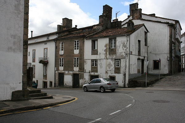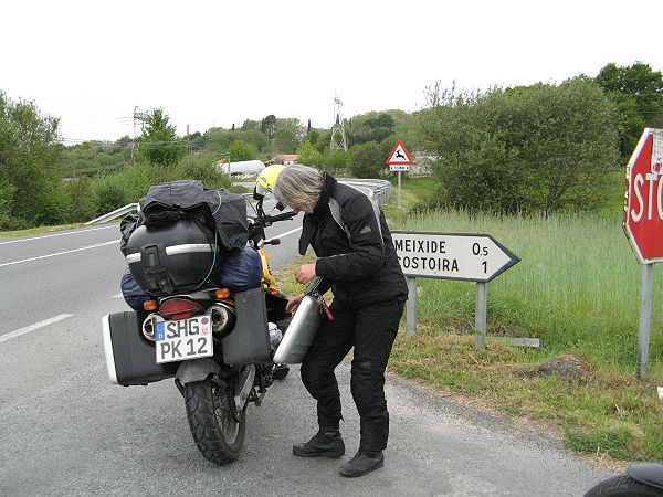 Das Wetter wurde schlechter und Friedrich entschied sich für eine südlichere Route, die N 120 hat uns zum Teil besseres Wetter beschert. Dafür nahmen wir so manchen kleineren Umweg in Kauf. Wir fuhren über Monteforte de Lemos (dort haben wir uns fürchterlich verfahren), dann über Chantada und Lalin. Wir zogen nun unsere Regenklamotten an und mussten durch schreckliche Unwetter fahren.