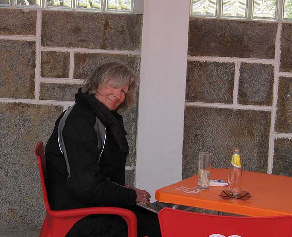 Auch hier setzten wir uns draußen in ein Café und schrieben 2 Postkarten.