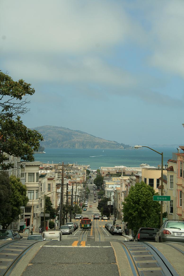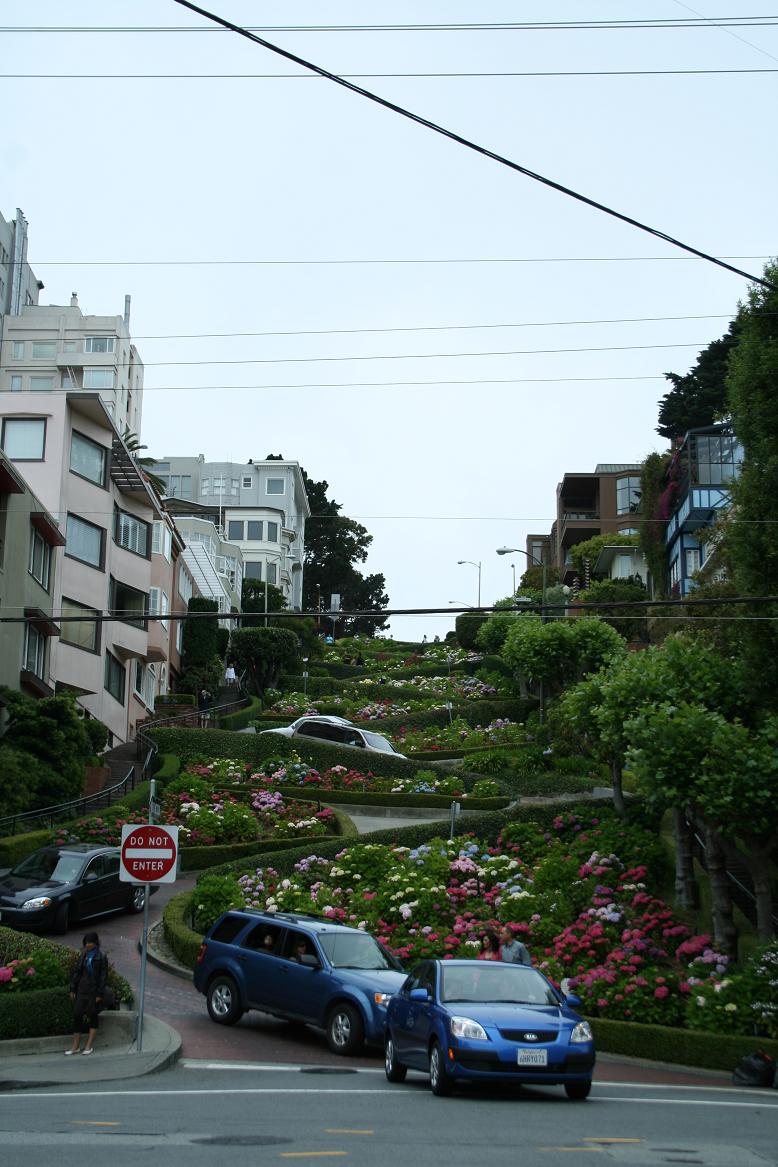 Wir kreuzen die Lombardstreet und sehen links von uns in der Ferne, natürlich auf einem steilen Hügel, die bekannte Serpentinenstraße - also nichts wie hin.... -