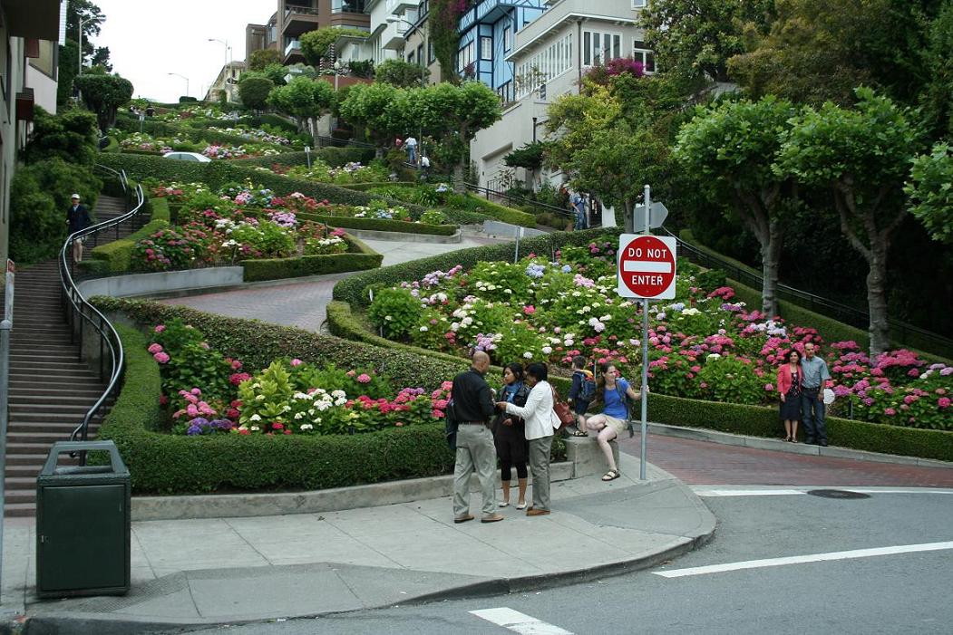 Der kleine sich schlängelnde Teil der Lombardstraße ist eine typische Touristenattraktion, entsprechend viele Touristen finden sich denn dort auch. Es ist echt schwierig das Teil zu fotografieren. Die Straße ist neben den Serpentinen massiv mit Blumen bepflanzt und erhält auch dadurch ihre besondere Wirkung. -