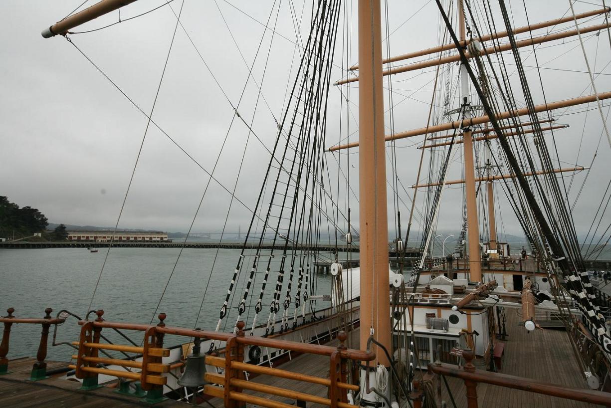 Auf dem Pier liegt laut Reiseführer die "weltweit größte Sammlung alter Schiffe" – aber das halten wir für falsch. Es sind nämlich nur 6.Einige maritime Sachen kann man kostenlos ansehen, wie z.B. Werkstätten oder ein Hausboot. Für einige Schiffe muss man 5 Dollar Eintritt zahlen. WIr beschließen uns alles nur von außen anzusehen Doch dann bekommen wir von zwei anderen Gästen zwei Aufkleber als Eintrittskarte geschenkt und gehen auch auf die entsprechenden Schiffe. Dort liegen u.a.die Balclutha, ein 1886 gebautes Dreimast- Vollschiff, das zwischen Großbritannien und Kalifornien Weizen und Kohle transportierte.Das Schiff wurde übrigens im Film "Meuterei auf der Bounty" bennutzt.