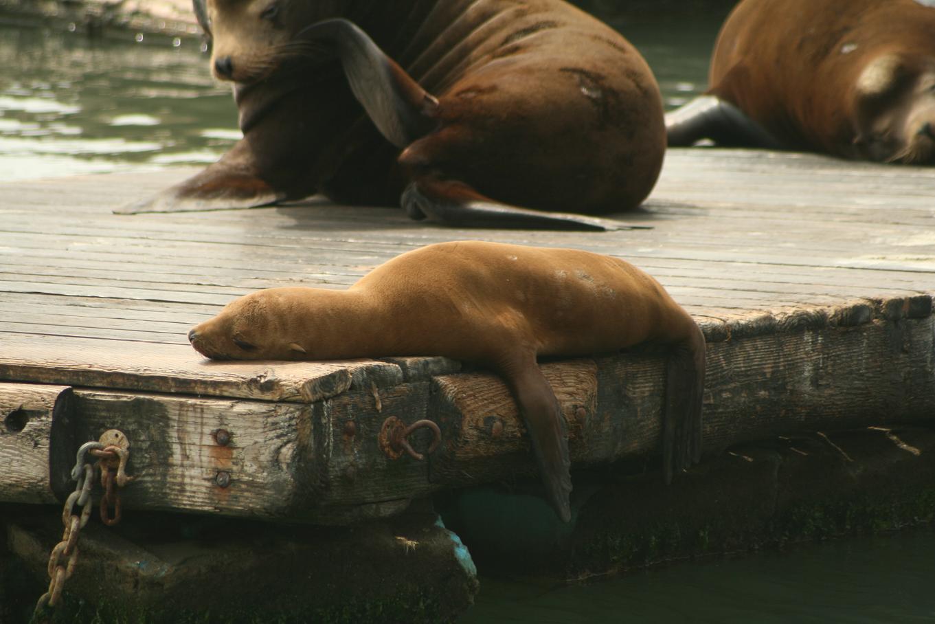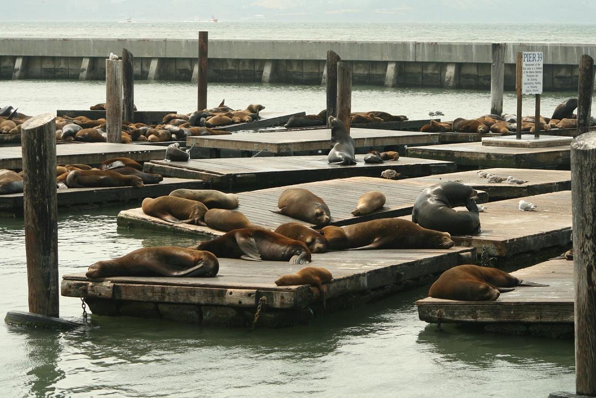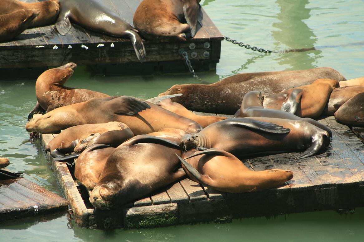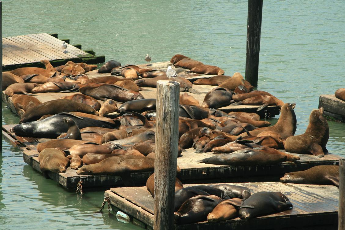 Und dort liegen die bekannten Seelöwen von San Francisco und wechseln ihr Fell - oder auch nicht.