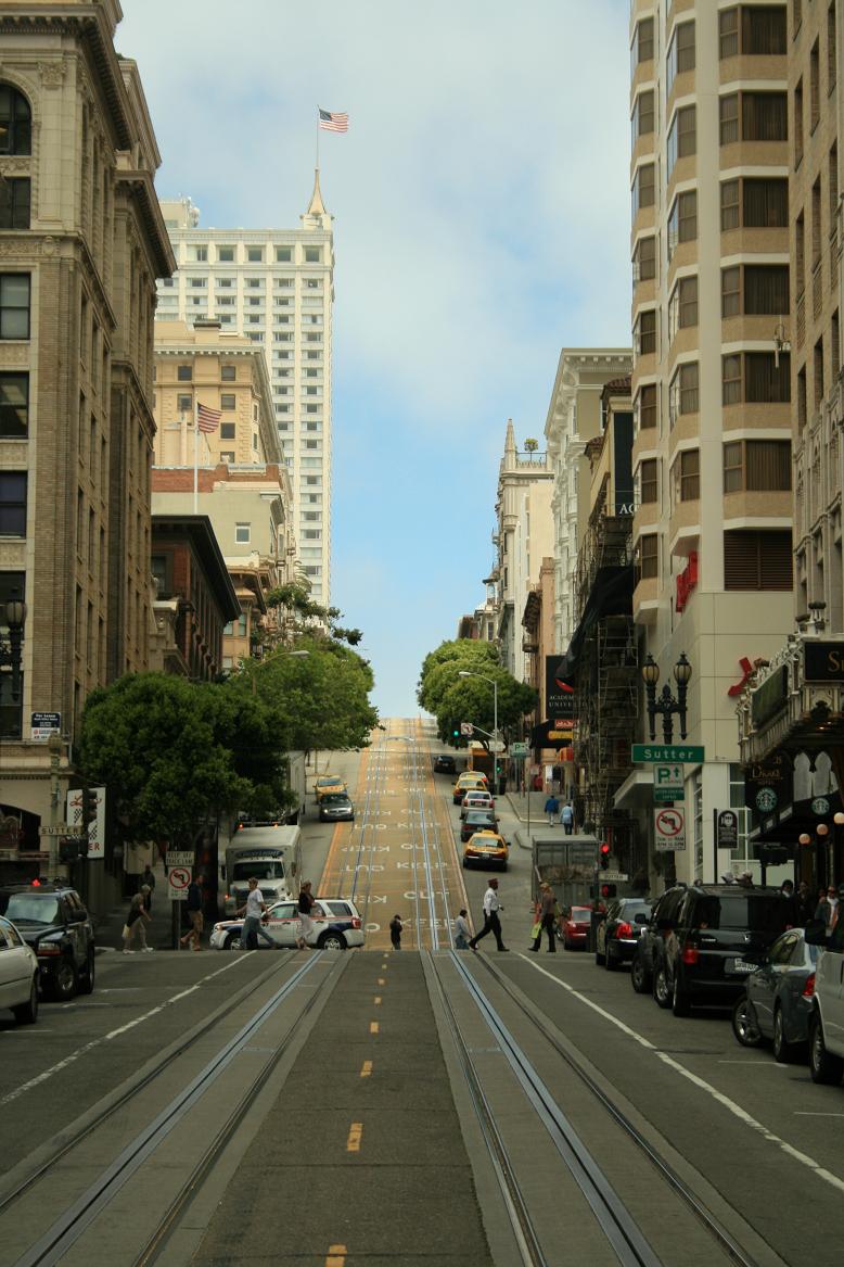 Da der Weg nicht so berauschend ist, biegen wir nach rechts ab, um irgendwie zum Coit Tower zu kommen, der auf dem Telegraph Hill liegt.