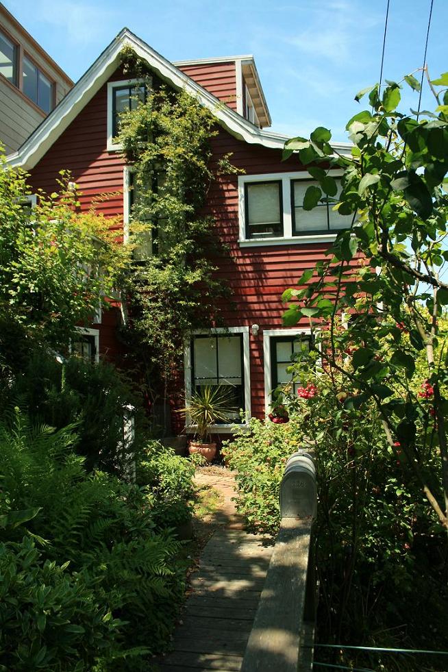 Der 63 m hohe Turm wurde 1933 auf dem Gipfel des 87 m Telegraph Hill gebaut. Er soll der Spitze einer Feuerwehrspritze nachempfunden sein. Der Hügel ist teils felsig und man kommt nicht so einfach dorthin. Aber wir finden einen Weg und werden von einer netten Amerikanerin darauf hingewiesen, welche Treppe wir nehmen sollen, da diese schöner ist. Und der Aufstieg ist wirklich schön, wenn auch mit ca. 300 Stufen ganz schön anstrengend. Man kommt durch nahezu paradiesisch wirkende Gärten mit schönen kleinen Häusern. Sehr idyllisch. -