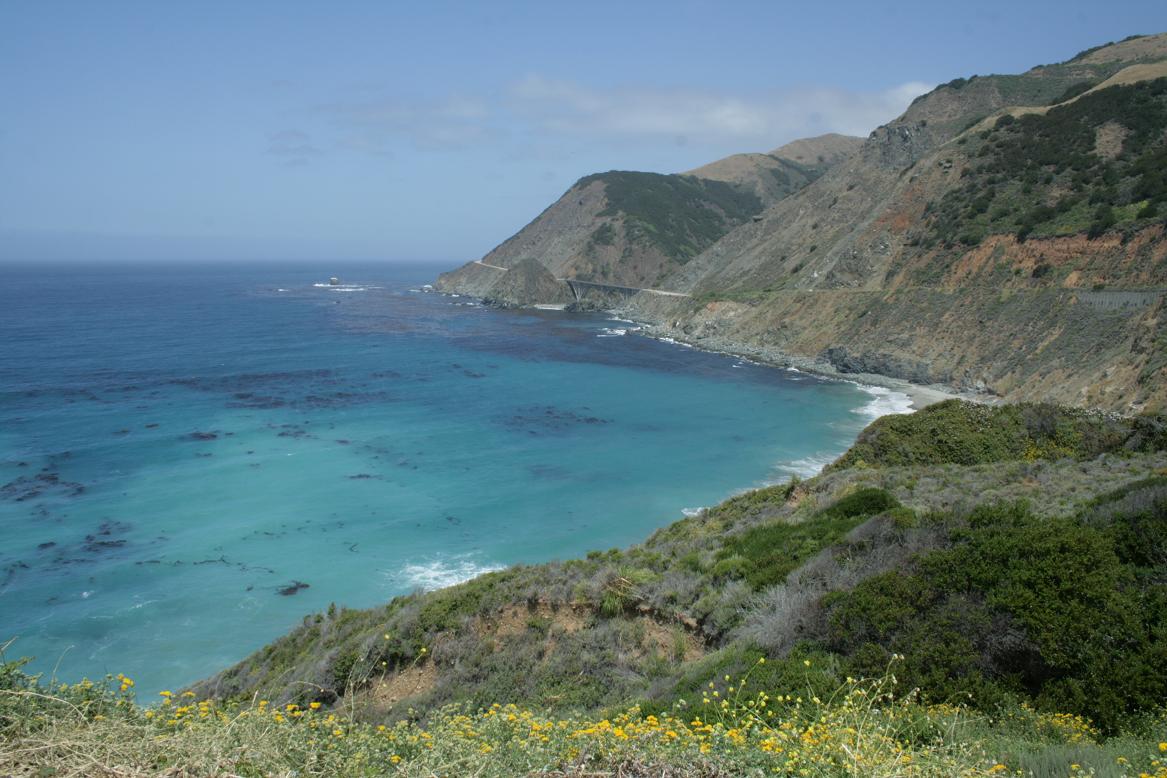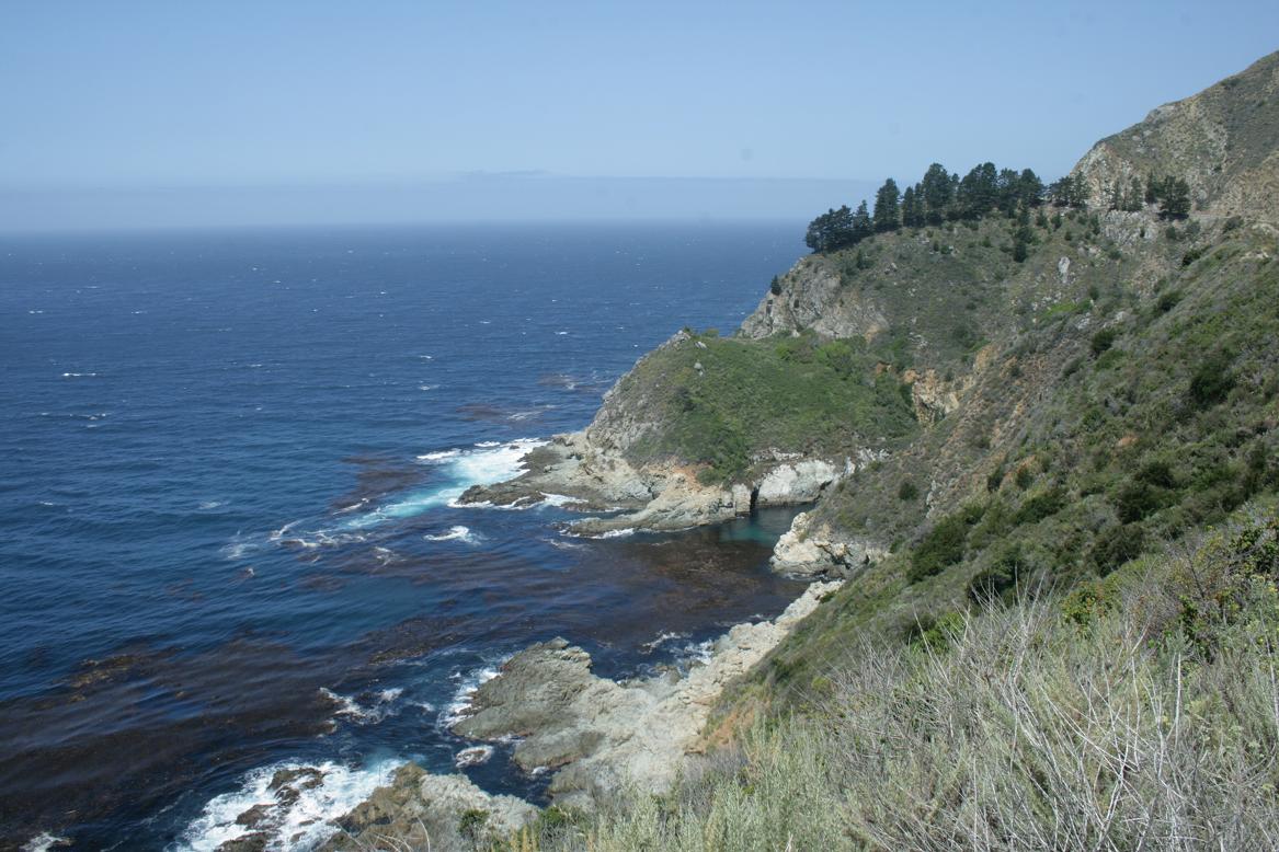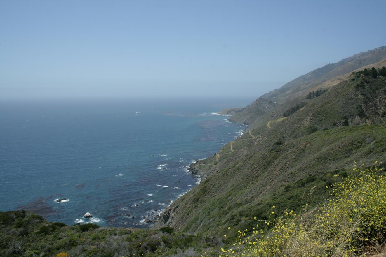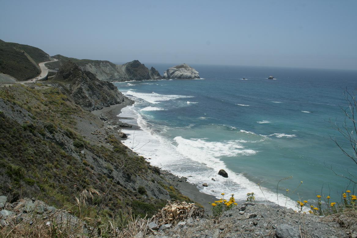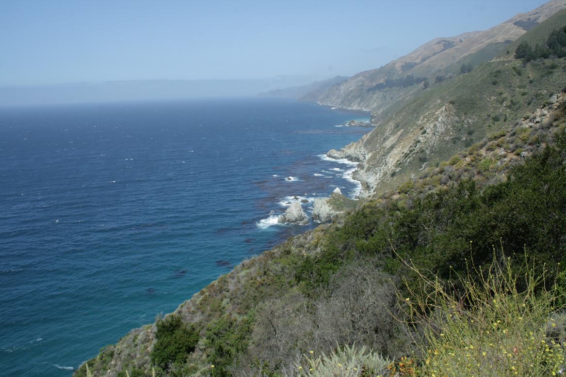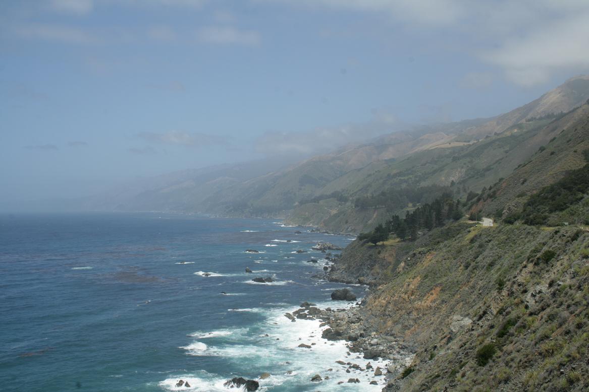 Weiter geht es den highway 1 entlang. Unterwegs bei einem Stopp werden wir von diesem Gesellen begrüßt. Wale soll man an einer Stelle sehen können. Wir sehen keine. Dafür tritt Jan beinahe auf eine Schlange. Vor Schreck auf beiden Seiten gibt es leider ein Foto