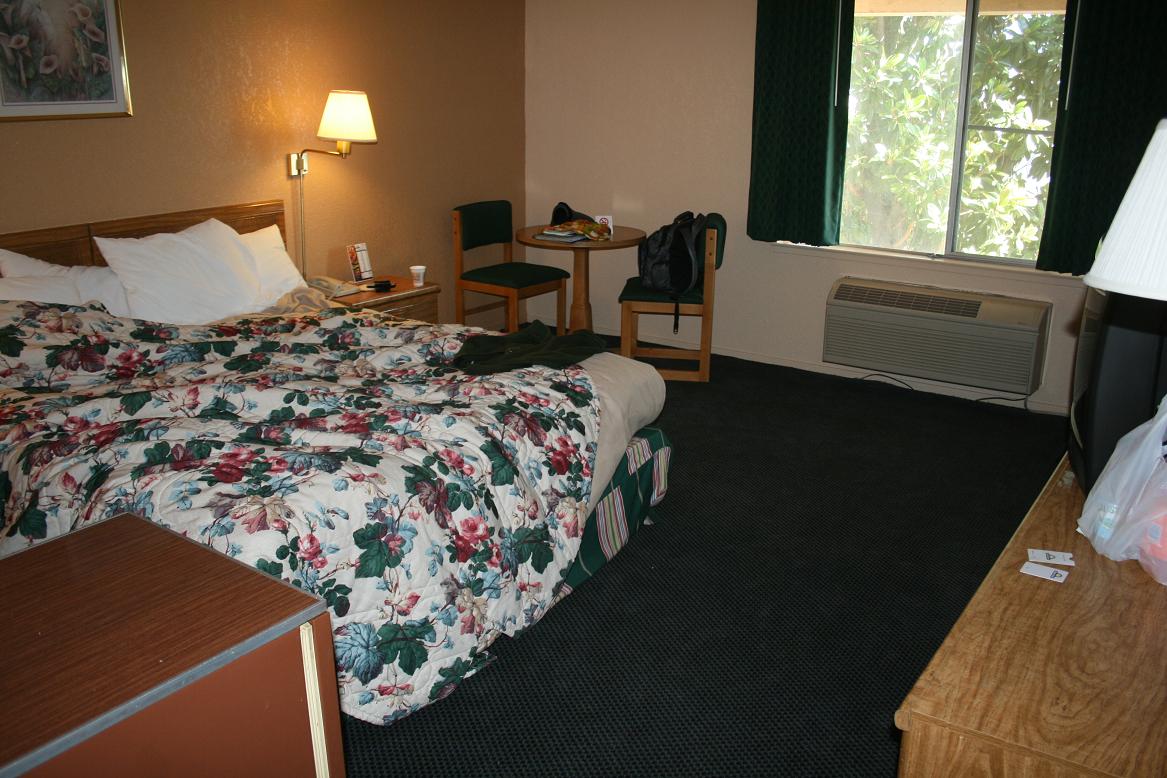 So geht es weiter bis nach Fresno. Das letzt Nacht im Internet gebuchte Hotel ist schnell gefunden und es gibt überhaupt keine Probleme. Wir sind erleichtert. WIr müssen nicht einmal die Kreditkarte zeigen oder den Pass. Das Zimmer ist groß und gut ausgestattet.