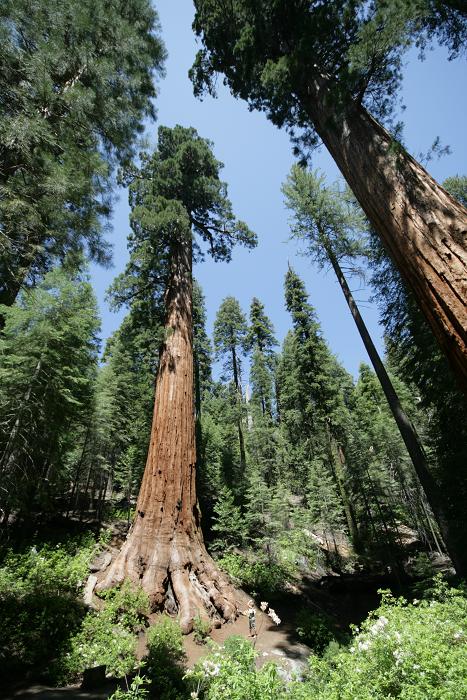 Als erstes fahren wir zu einem Bereich der sich Mariposa Grove nennt und wo die Riesenbäume, die... stehen.Die Bäumen heißen Sequoia Gigantea. Sie gedeihen nur in den Hochlagen der Sierra Nevada und werden 80 m hoch bei einem Umfang bis zu 30m. Die ältesten Bäume sollen 2700 Jahre alt sein. Selbst Waldbrände können ihnen nichts anhaben. Ihre bis zum 50 cm dicke Borke sondert bei Hitze einen Flüssigkeit ab, die wie ein Feuerlöscher wirkt. Außerdem öffnen sich die Zapfen mit den Samen nur bei extremer Hitze, so dass ein Feuer sogar zur Geburtsstunde neuer Bäume werden kann.