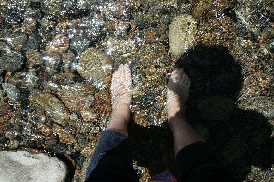 Wir kommen an eiem Fluss entlang, der wirklich nett aussieht.. Ich traue mich mit den Füssen ins Wasser-geht eigentlich -