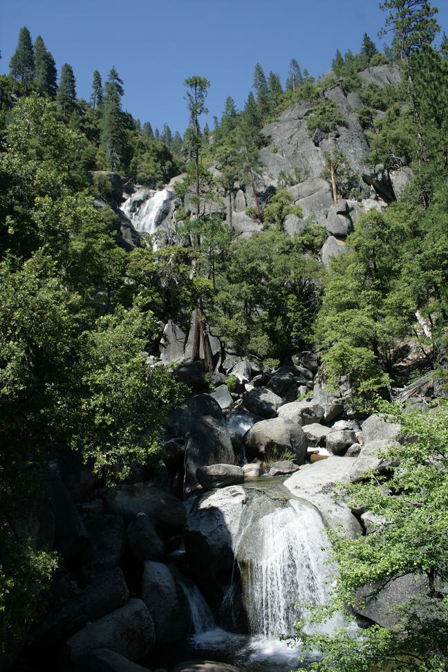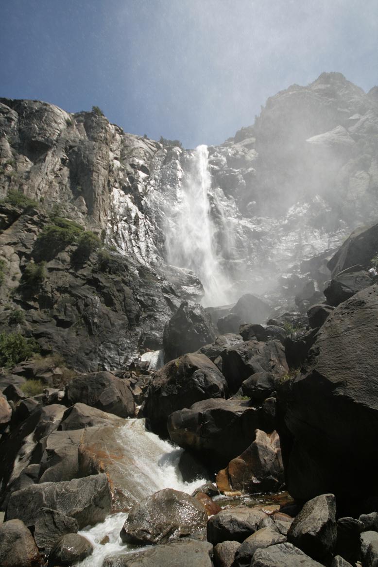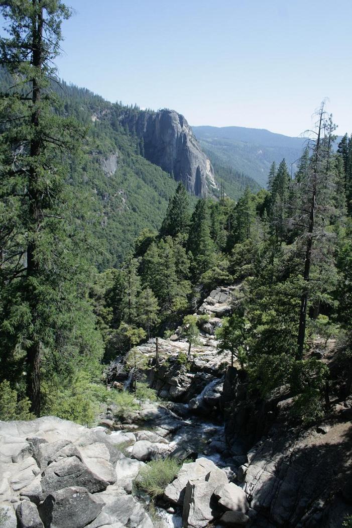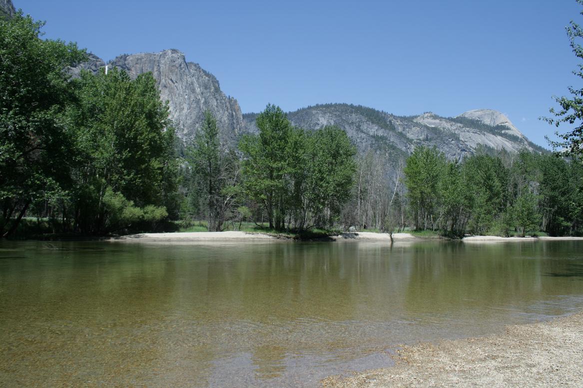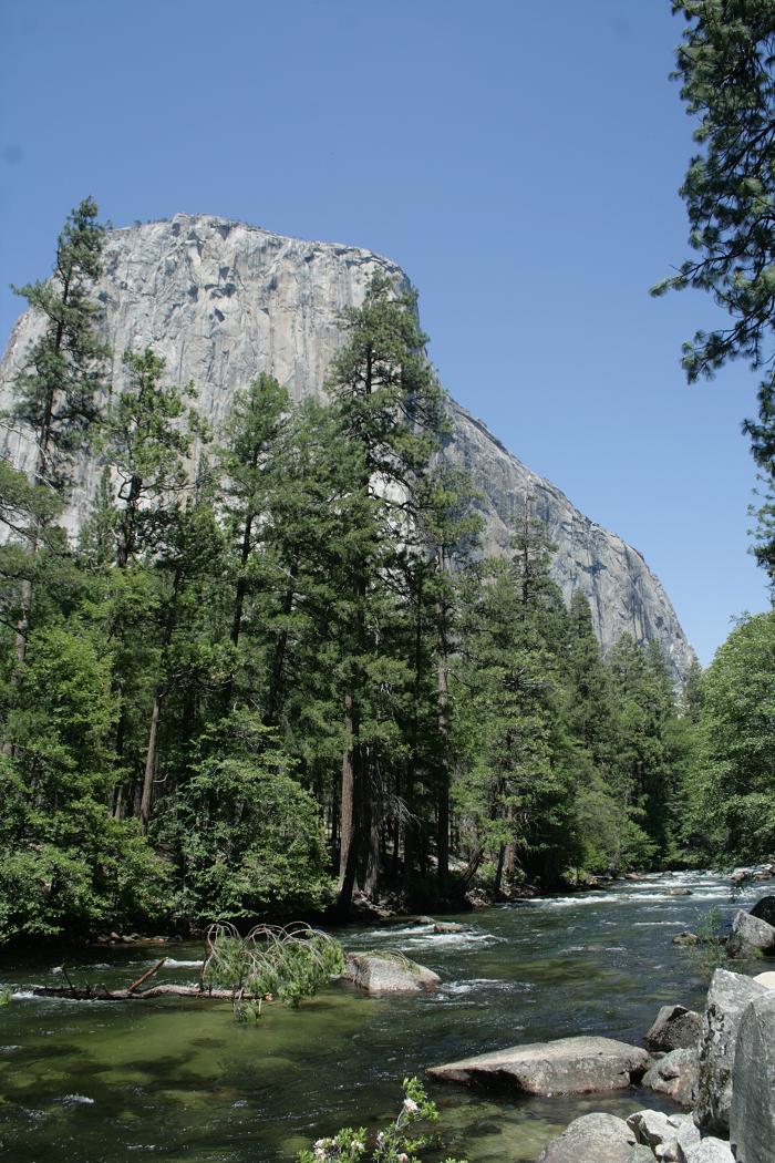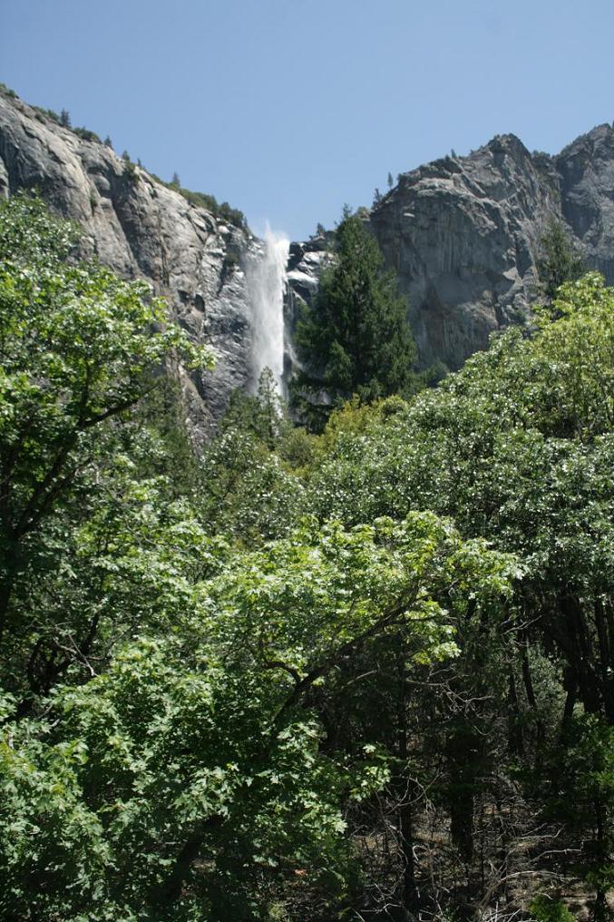 Da wir an einem Tag ohnehin nur einen kleinen Teil des Parks sehen können, beschließen wir den Kernweg um Yosemitevillage abzufahren.Zunächst müssen wir uns weiter hocharbeiten. Dann durchqueren wir einen Tunnel und dahinter findet sich ein phantastischen Ausblick auf drei der wesentlichen Sehenswürdigkeiten: Die Felsen der Kapitän, Half Dome und der Wasserfall Bridalveill.