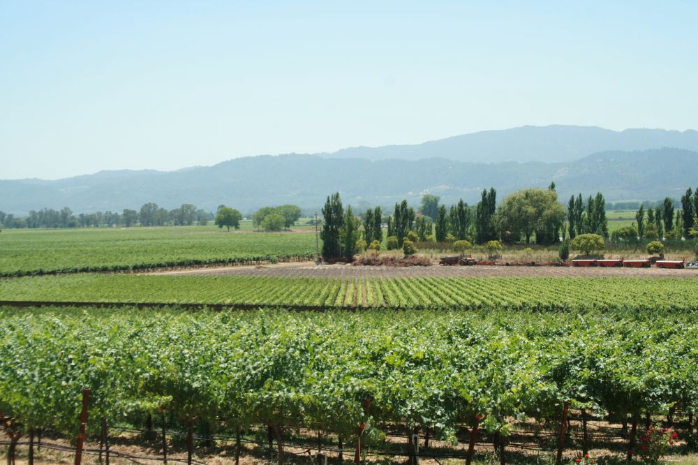 Das Tal ist breiter als ich es mir vorgestellt habe und weniger hügelig als in meinen Vorstellungen. Es gibt Unmengen von Weinstöcken und Weingüter mit klangvollen Namen. Teilweise stehen hohe schmale Zypressen bei den Häusern, die gar nicht mehr im kalifornischen Holzstil gebaut sind, sondern eher an die