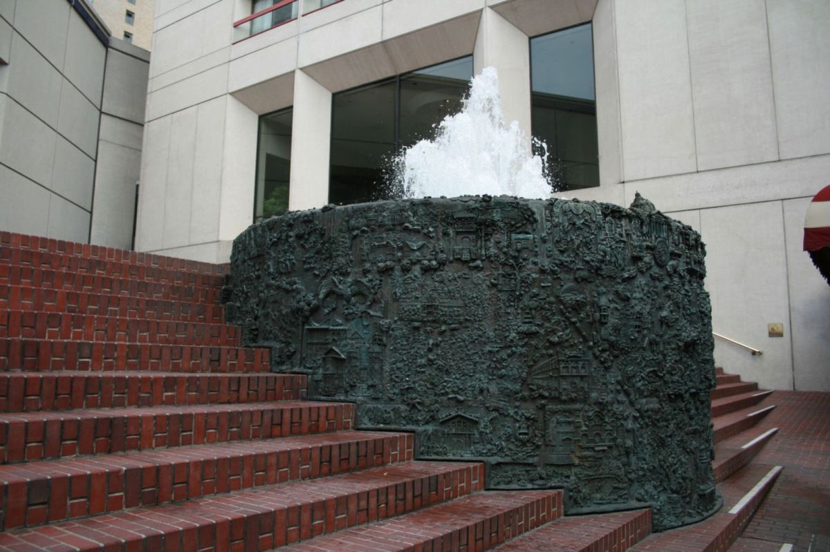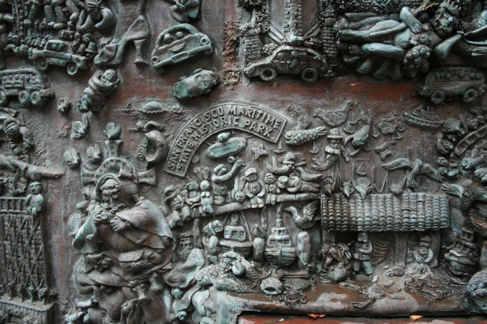 In der Nähe des Union Square ist ein ganz toller Brunnen mit Motiven aus San Francisco -