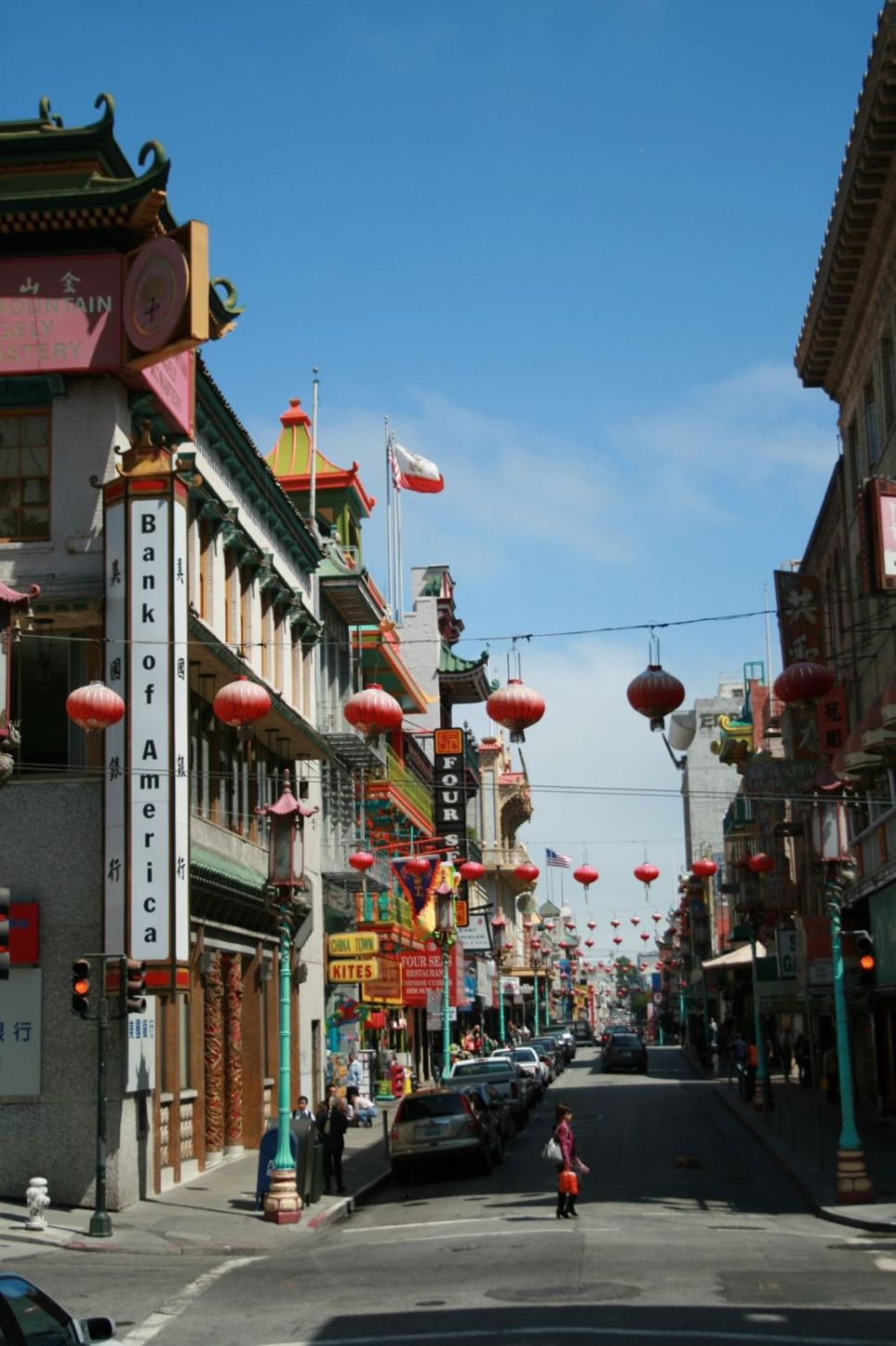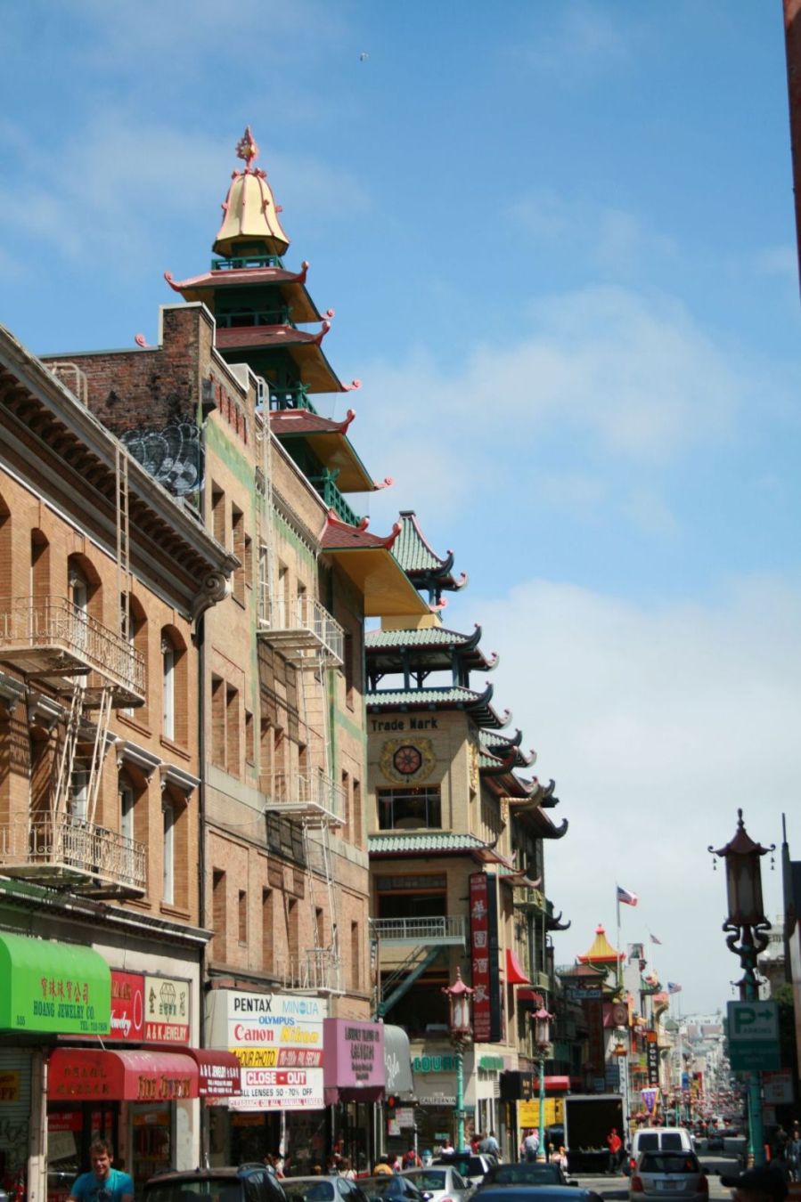 Dann laufen wir nochmal Richtung Chinatown. Jan hat ein Schmerzmittel eingenommen und schafft es mit seinem Fuß in gemächlichem Schritt. Während es am Morgen bedeckt und sehr frisch war, kommt nun blauer Himmel durch und ich stopfe meine Jacke in den Rucksack. Der scheuert etwas unangenehm auf meinem Rücken, der ja einen Sonnenbrand abgekommen hat, da ich vergessen hatte ihn einzucremen.
