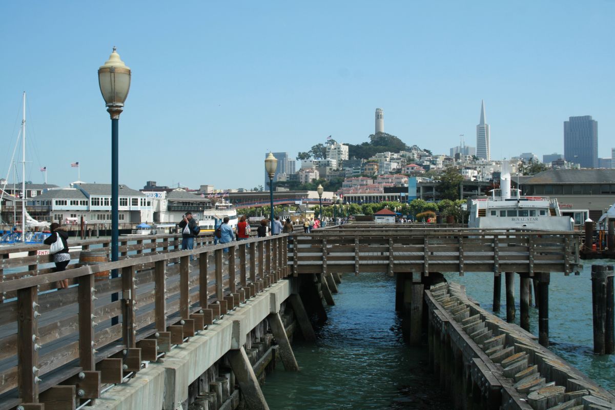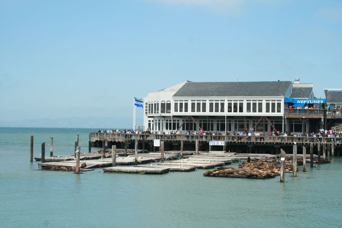 Anschließend sitzen wir eine ganze zeitlang in der Sonne auf einem Pier neben dem Pier 39 und haben Blick auf die Seelöwen und die Stadt. Sehr schön.