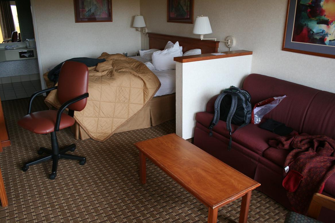 Nach Stunden haben wir uns entschlossen das Gepäck da zu lassen. Ich hoffe, es ist morgen noch da. Dann sind wir mit einem anderen deutschen Paar in einen der Hotelshuttlebusse gestiegen, der unter anderem auch ins Travellodge fuhr. Ich wollte es nicht im Goodnight Inn versuchen, da die kein freies Internet haben und ich zumindest zuhause berichten wollte, was hier los ist. Der Fahrer fragte, ob wir eine Buchung hätten, und wir erklärte ihm die Lage. Er hat dann telefoniert und gemeint Travellodge sei voll, aber das Comfort Inn hätte noch zwei Zimmer. Uns egal. Wir sind jetzt also im Comfort Inn für 75 Dollar mit Kreditkarte und einem Frühstück und kostenlosem Internet. Morgen um 12.00 müssen wir ausgecheckt haben und dann werden wir am Flughafen sehen, wie es nun weitergeht. Keine Ahnung wann wir je wieder in Hamburg ankommen..... So habe ich mir das Ende dieses schönen Urlaubes wirklich nicht vorgestellt. Da geht es dann ja gleich um Schadensersatzansprüche..... Und meine gesamte Planung ist völlig im Eimer, denn wir haben am Sonntag den Geburtstag eines Familienmitgliedes, den ich am Sonnabend glaubte gemütlich vorbereiten zu können. Stattdessen kann ich froh sein, wenn ich bis dahin überhaupt zuhause angekommen bin. Ich berichte, wie das Chaos geendet hat.