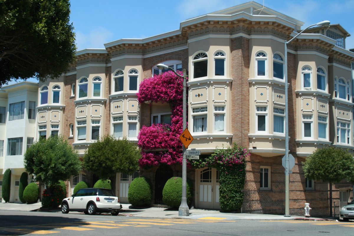Wir entscheiden uns zum Hotel nahe des Airports durch downtown zu fahren. Und da bietet es sich an, dann auch die kurfenreiche Straße der Lombardstreet einmal selber mit dem Auto zu befahren. mit 27% Gefälle erwies sich die Lomardsstreet an dieser Stelle als zu steil für Fahrzeuge. In den 1920ziger Jahren wurde der abschnitt nach dem Gipfel des Russion Hills neu gestaltet und durch 8 Kurven entschärft. Die krümmste Straße der Welt, eine Einbahnstraße, kann nur bergab befahren werden. Für Fußgänger gibt es Treppen.