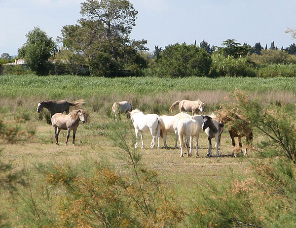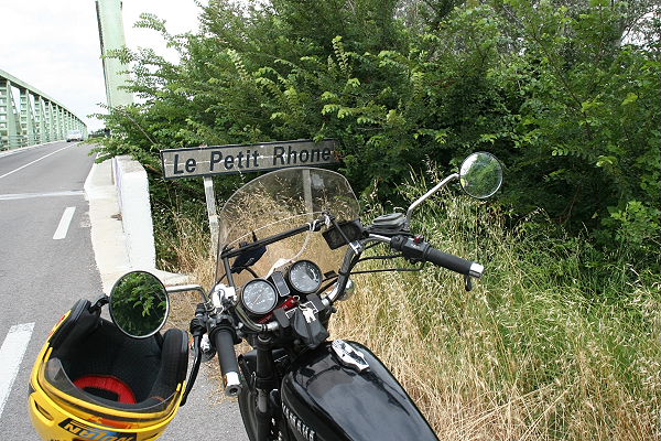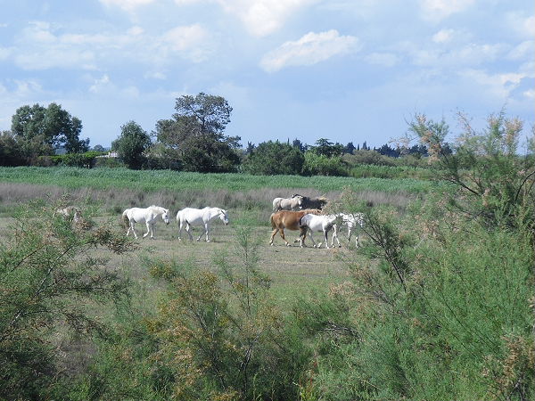 In Grand La Motte hielten wir bei der Tourismus- Information an und holten uns Karten der Region. Wir waren noch 50 km von unserem Ziel entfernt. Nun schmiss Dieter seinen Navi an und ab ging es wieder durch die schönsten Ecken. Hier gefällt es uns. Wir sehen die weißen Pferde der Camargue, Flamingos, die Petite Camargue, die Petite Rhone, überqueren den Kanal Sete-Rhone und rechts und links sind die Ausläufer der Rhone.