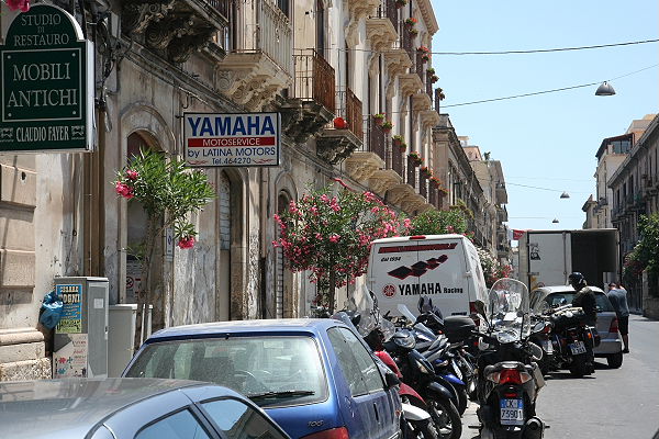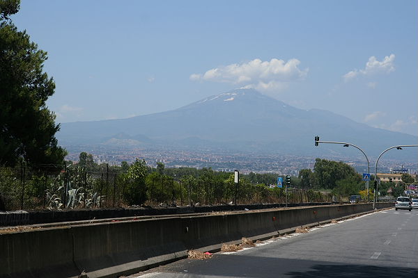 Wir nähern uns Catania und fahren die Küstenstraße entlang. Kurz vor Catania soll es einen großen Campingplatz geben. Den haben wir auch gefunden: der Bungalow kostet 120 €! Da sich hier ein Platz nach dem anderen reiht, fahren wir weiter und fragen noch bei 2 anderen nach. Nee, so viel Trubel wollen wir nicht und dann noch die überhöhten Preise. Wir beschließen Catania hinter uns zu lassen.Im Norden der Stadt machen wir noch einen Versuch, aber der Platz ist unter aller Kanone.