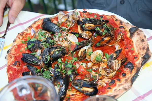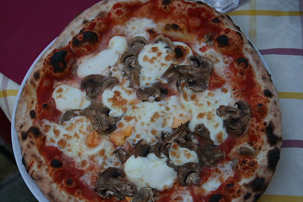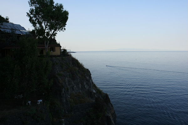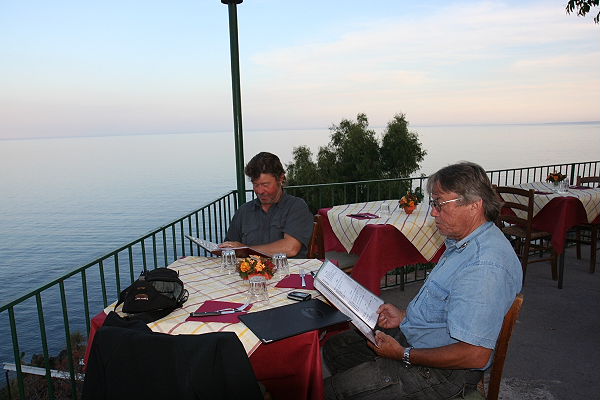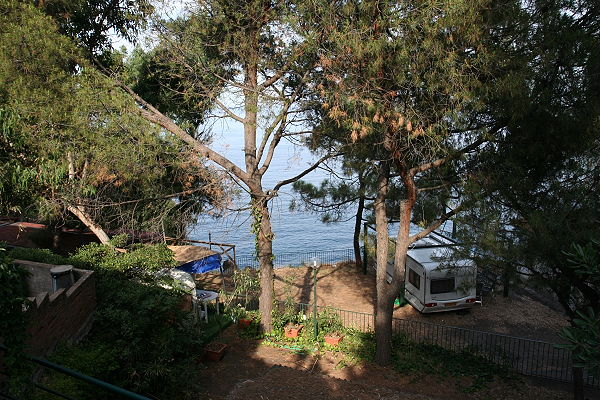 Am Abend sind wir in die Pizzaria hier auf dem Platz gegangen, hatten einen super Tisch mit Blick auf das Meer, der Etna-Wein schmecke klasse und die Pizza auch.