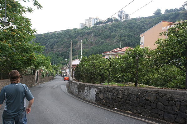 Wir fahren einem Auto hinterher, im Glauben, dass sie auch zum Ätna wollen. Der Weg führt durch enge Gassen und endete nach einigen Kilometern in einer Sackgasse.