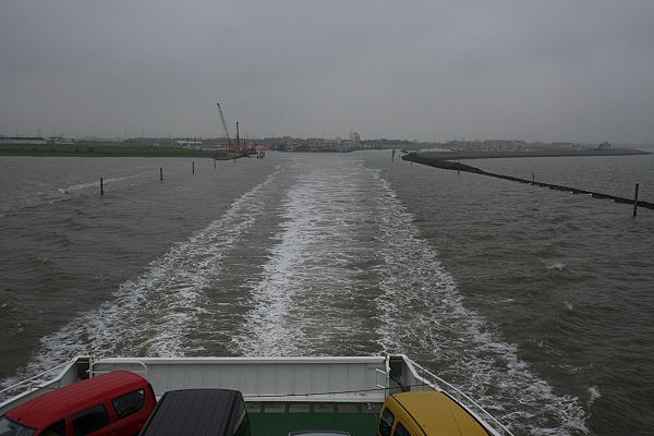 Ruckzuck gingen wir auf das Schiff, dass eigentlich 5 Minuten vor Ankuft des Zuges abfahren sollte. Die Überfahrt dauert noch nicht einmal eine Stunde. Das Wetter ist diesig und es nieselt leicht.