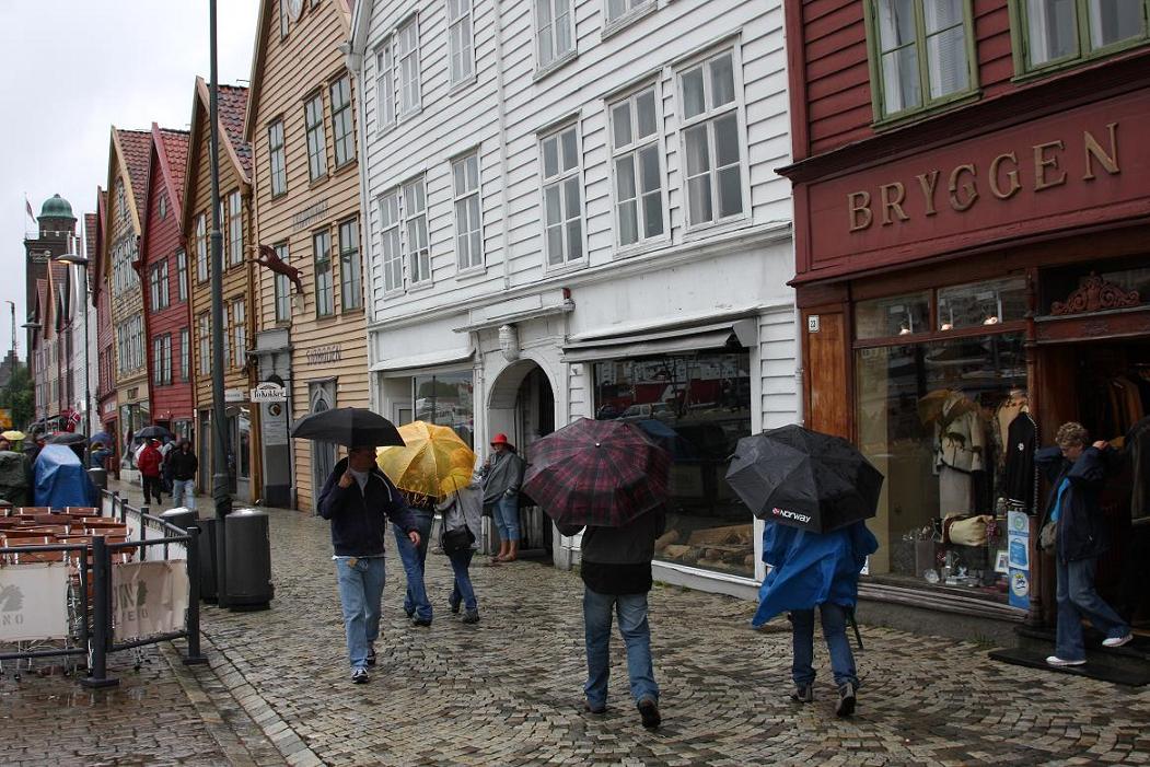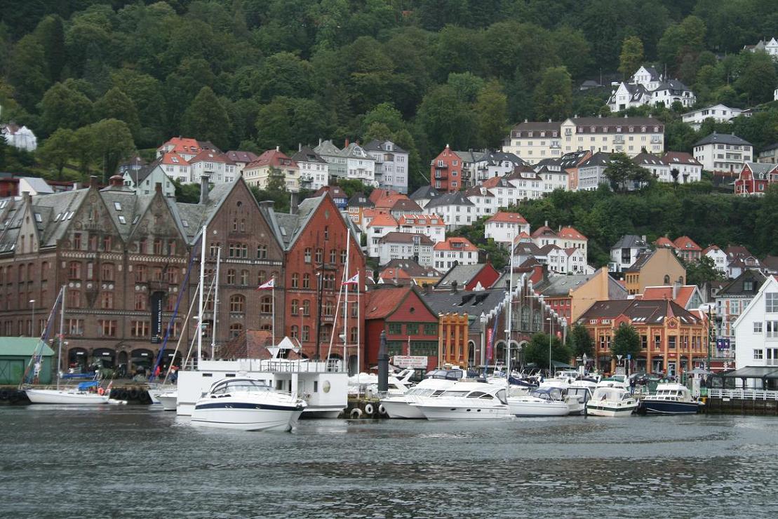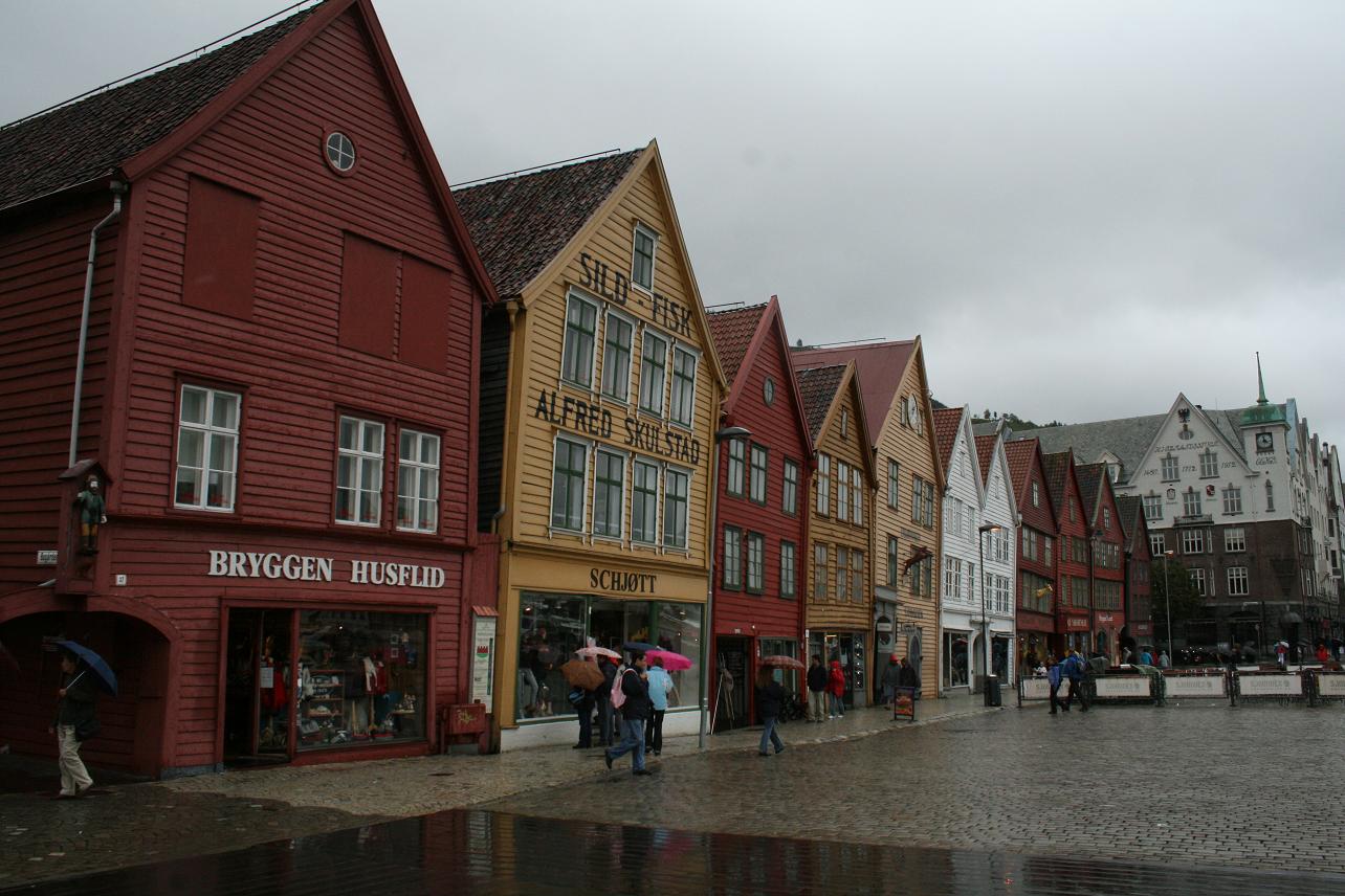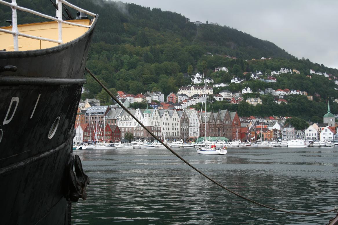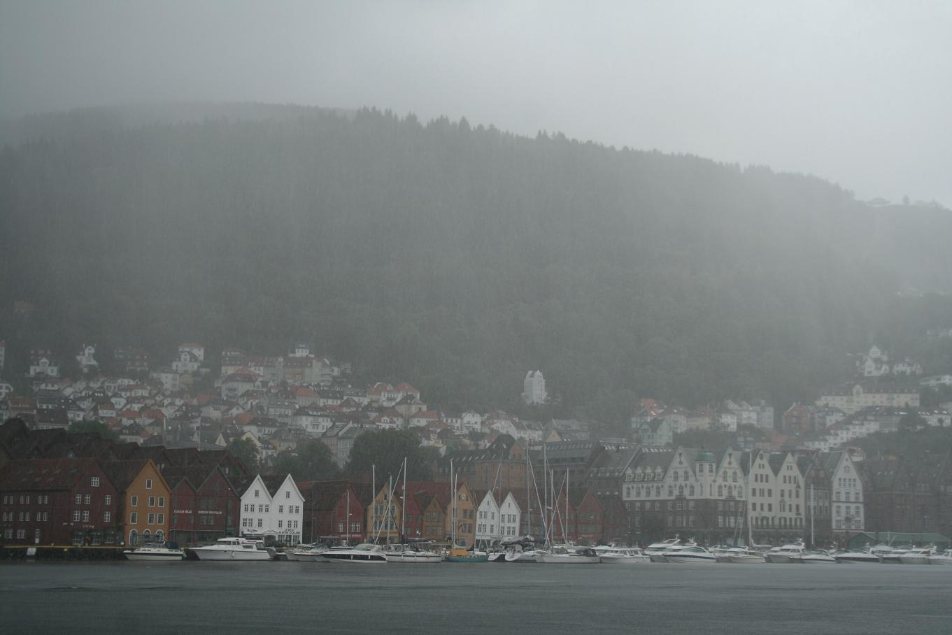 Bergen liegt im südlichen Teil von Norwegen, und zwar im Fjordnorwegen, und ist bereits mehr als 900 Jahre alt. Mit rund 240.000 Einwohnern ist es die zeitgrößte Stadt Norwegens. Es liegt wunderschön dem Meer zugesandt und die Häuser verteilen sich auf Hängen.Im Mittelalter war Bergen Mitglied der Hanse und Sitz eines Hansekontors, aber keine Hansestadt. Dummerweise ist Bergen auch die regenreichste Stadt Europas, und das haben wir am letzten Wochenende deutlich gemerkt.