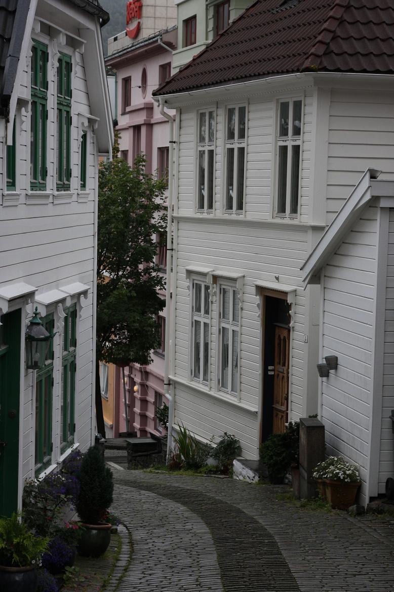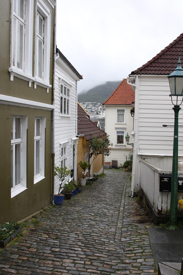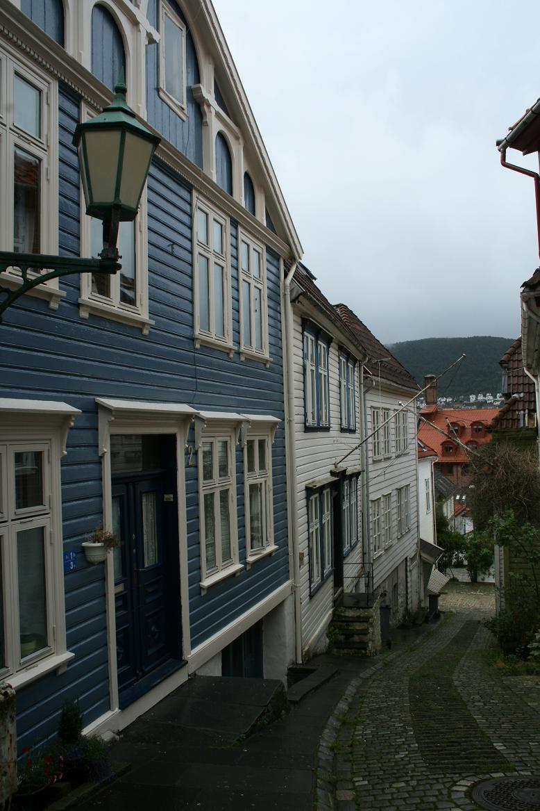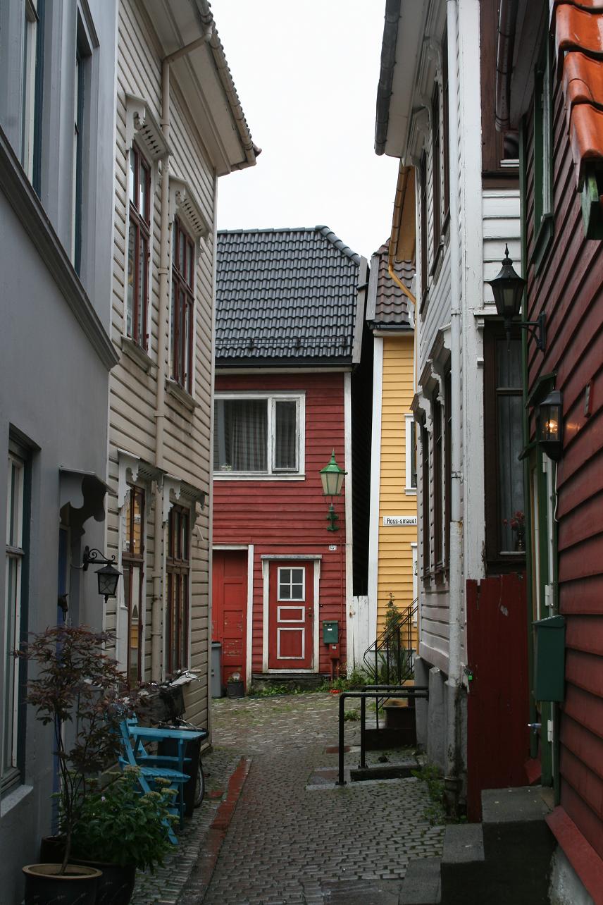 Über 400 Jahre hatten die Kaufleute der Hanse für Bergen eine große Bedeutung und bestimmten das Bild der Straße Bryggens, die direkt an den Kaimauern liegt. Alles aus Holz, und man kann sich vorstellen, dass das Vietel in regelmäßigen Abständen von Bränden heimgesucht wurde. Ein Spaziergang durch die engen Gassen und dunklen Gänge ist schon etwas besonderes. Heute sind dort Andenkenläden und Galerien beherbergt.