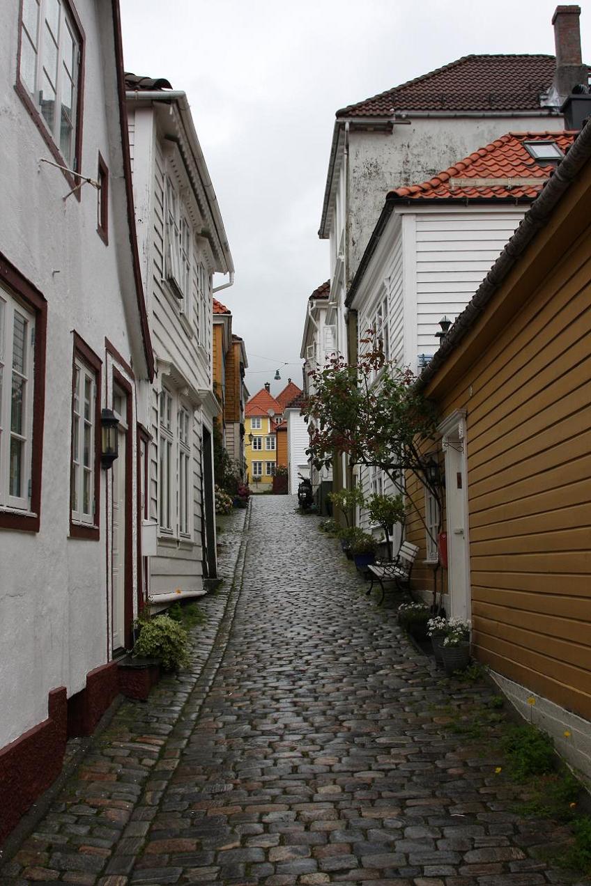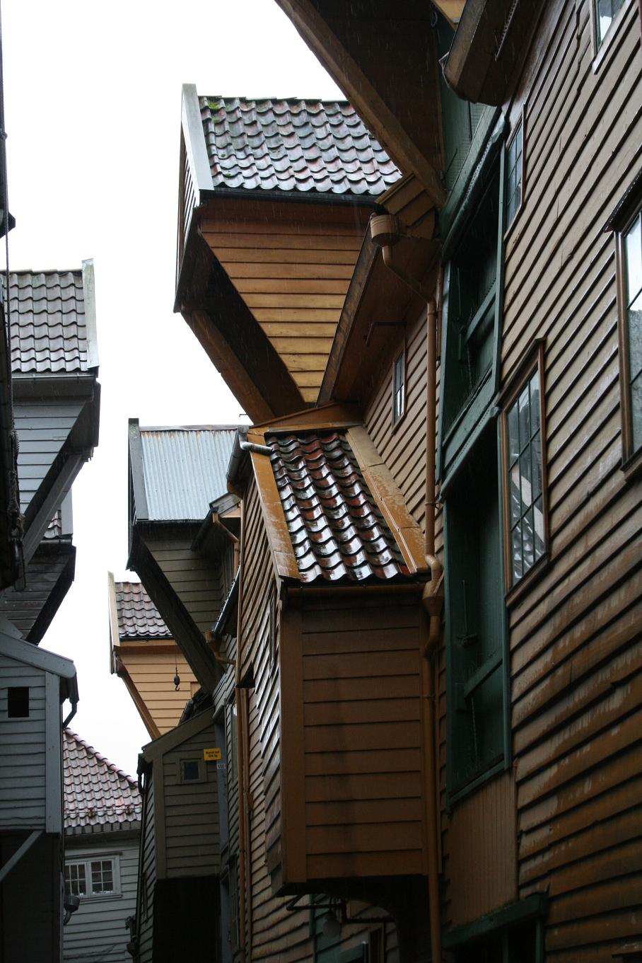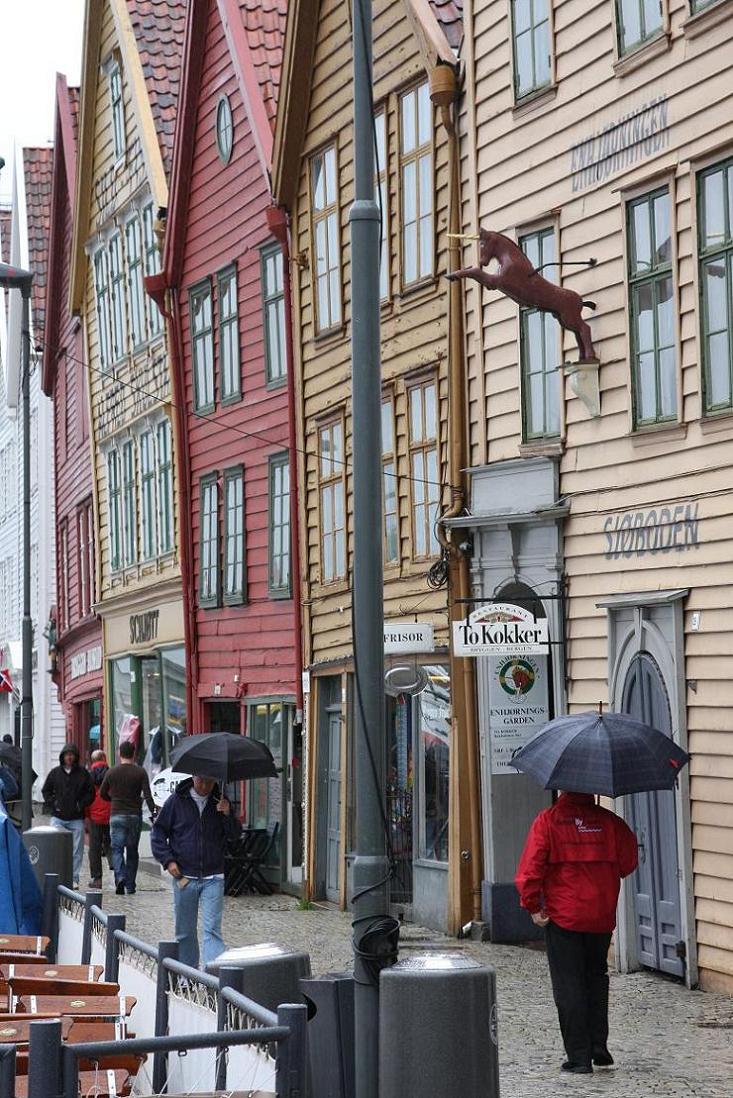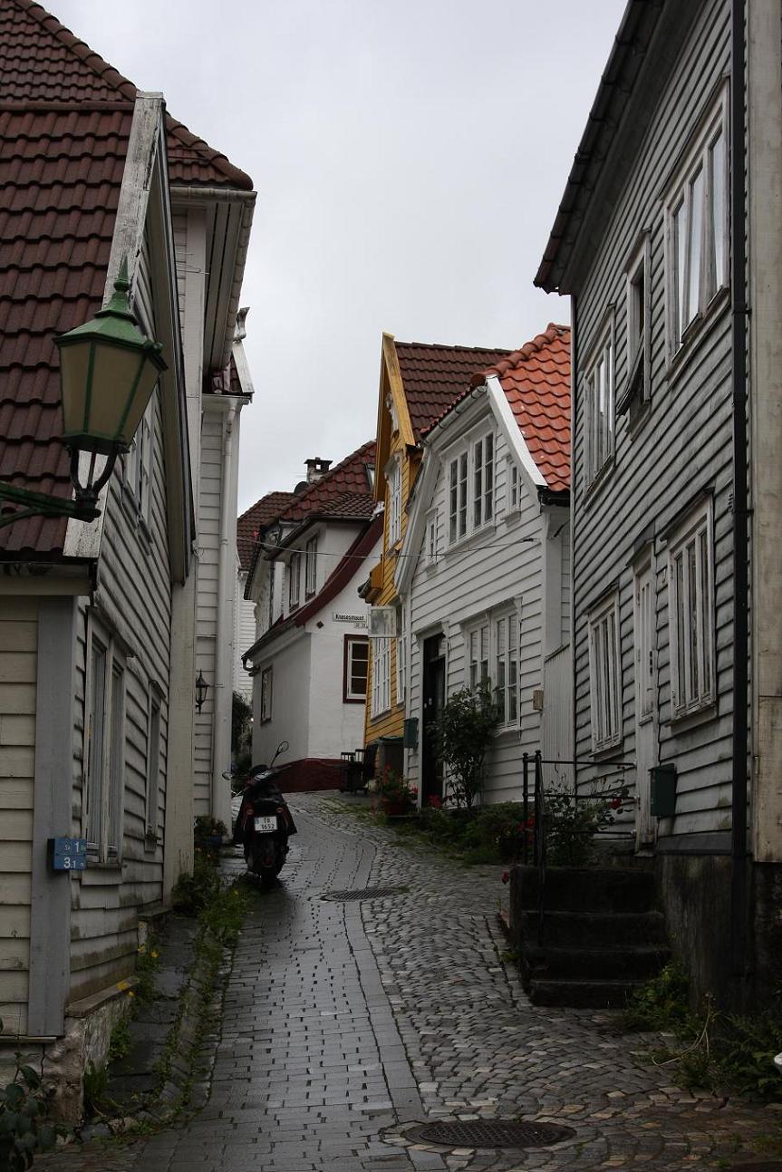Über 400 Jahre hatten die Kaufleute der Hanse für Bergen eine große Bedeutung und bestimmten das Bild der Straße Bryggens, die direkt an den Kaimauern liegt. Alles aus Holz, und man kann sich vorstellen, dass das Vietel in regelmäßigen Abständen von Bränden heimgesucht wurde. Ein Spaziergang durch die engen Gassen und dunklen Gänge ist schon etwas besonderes. Heute sind dort Andenkenläden und Galerien beherbergt.