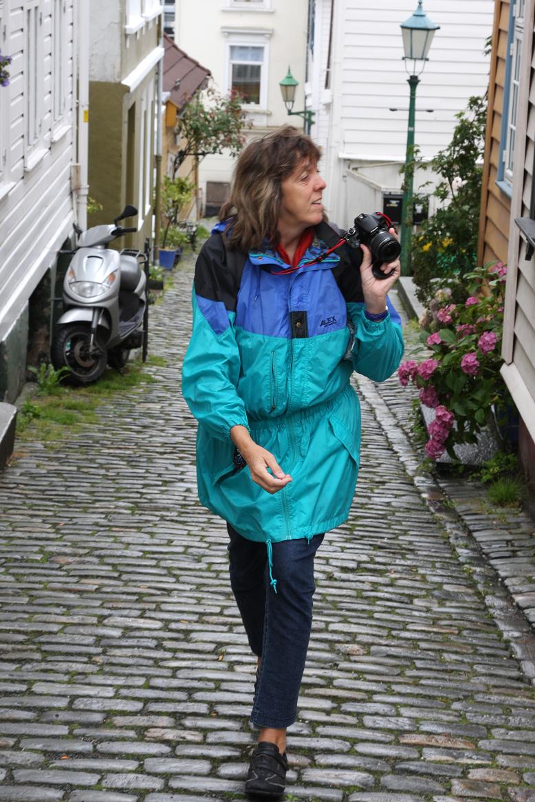 Bei Sonne ist es da echt toll. Hier einen Blick auf die brühmte Straße Bryggen von der anderen Wasserseite aus, dort liegen die Handelshäusern, heute Weltkulturerbe. ... Bei Bild 3 und 4 ereilte uns dann ein heftiger Regenschauer