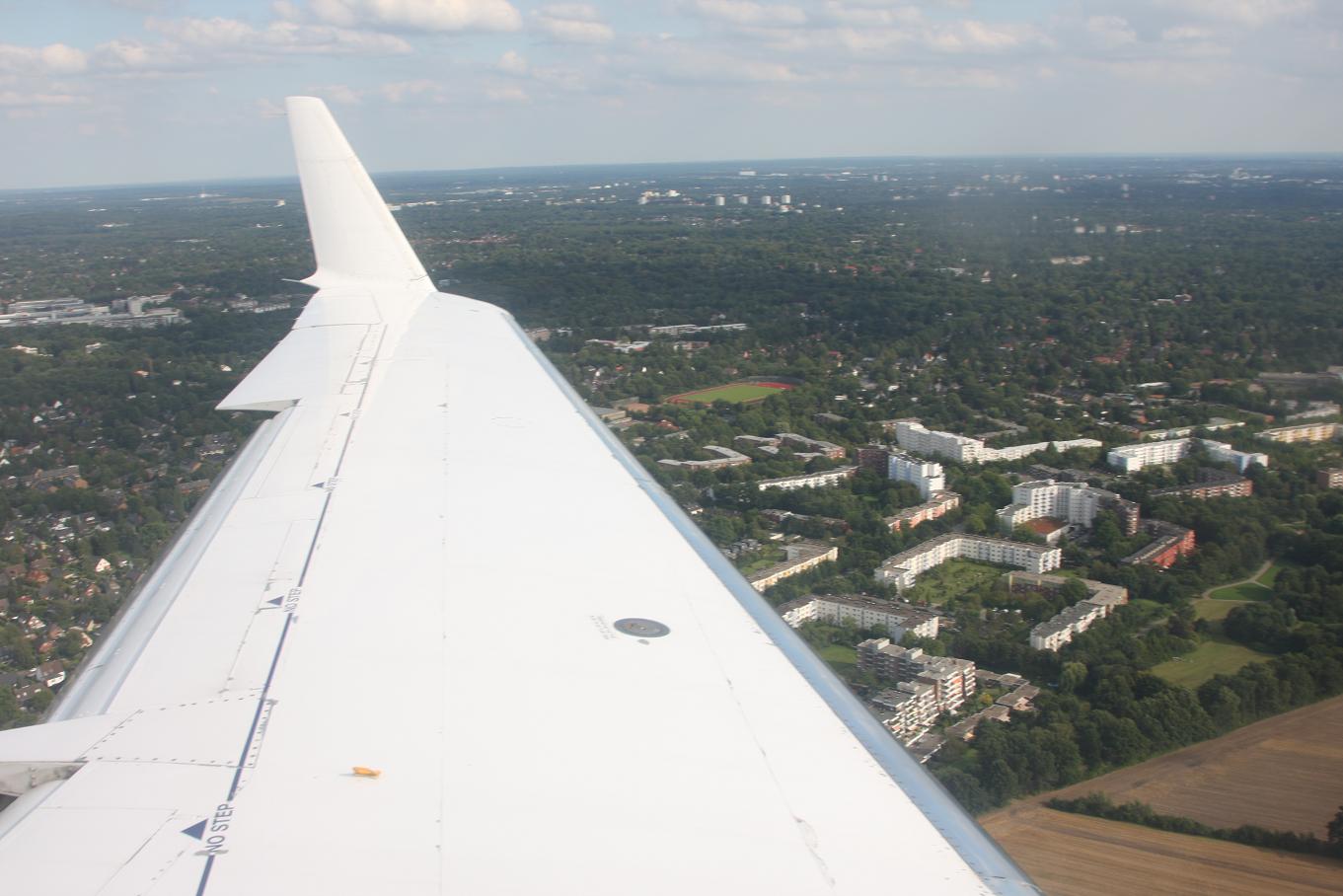 Und Auf Bild 4 sind wir im Landeanflug - genau unter dem Flügel ist unser Haus. Leider bekommen wir es fast nie aufs Foto, weil wir immer direkt drüberfliegen... -