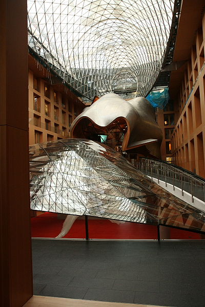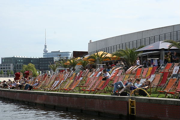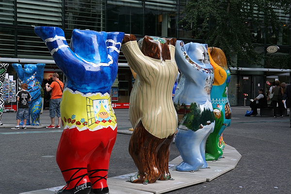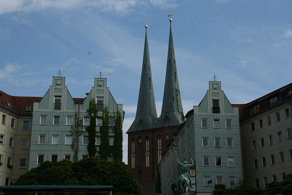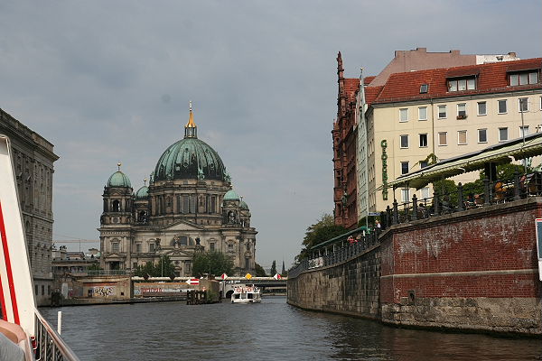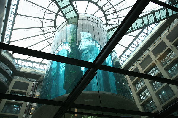 Das Wetter war einfach toll und als erstes besichtigten wir das CityQuartier DomAquarée in der Spandauer Straße. Vier Gebäude gehören zu diesem Komplex, u. a ein Hotel, Wohn- und Geschäftsgebäude. Wenn man das Gebäude betritt, so sieht man das 25 Meter hohe, zylindrischen Aquarium. Im Innern fährt ein gläserner, doppelstöckiger Aufzug bis ins Dachgeschoss. Hier befinden sich auch das Sealife und AquaDom, beide Aquawelten sind ein Besuchermagnet.