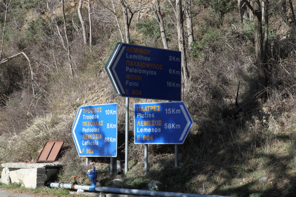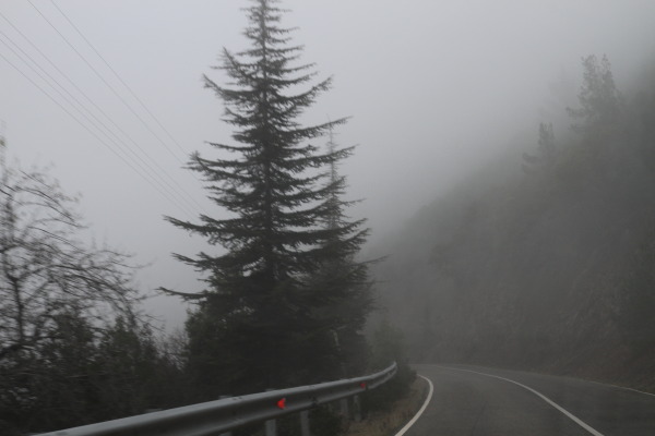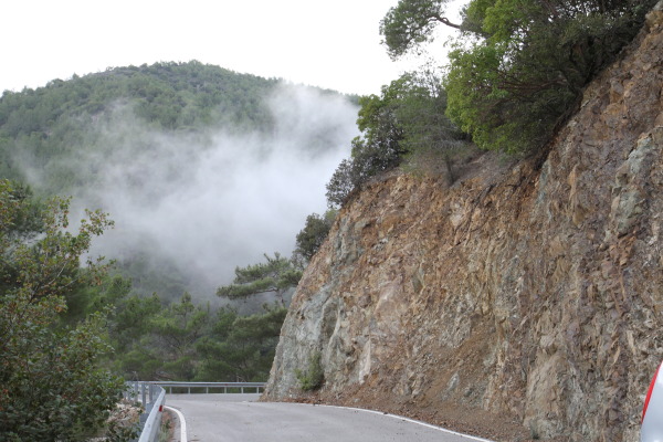 Es wird teilweise ganz schlimm, wir sehen kaum etwas. Da können wir den Olympos streichen, denn diesen wollten wir eigentlich noch erkunden. Der Olympos ist der höchste Berg auf Zypern, knapp 2.000 m hoch. Allerdings ist der Gipfel ohnehin nicht für Zivilisten geöffnet, da er militärisch genutzt wird. Na ja, bei diesem Nebel entfällt ohnehin die Qual der Wahl und wir fahren zurück zum Hotel.