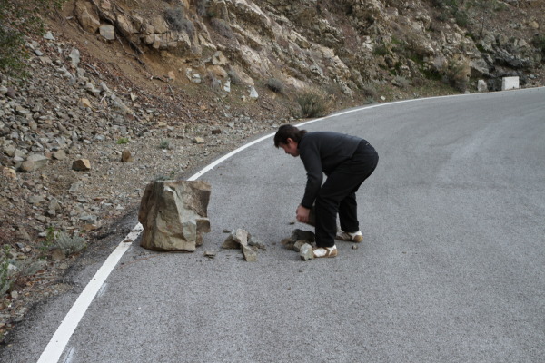 Es wird Zeit zurückzufahren, wir wollen noch im Hellen zurückkommen. Vorsicht Steinschlag! Friedrich schafft es noch vorher zu stoppen.