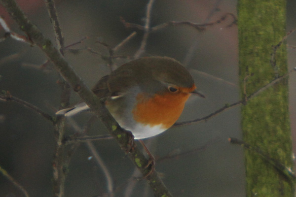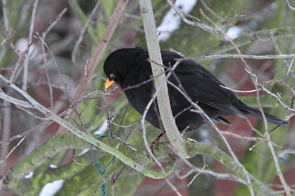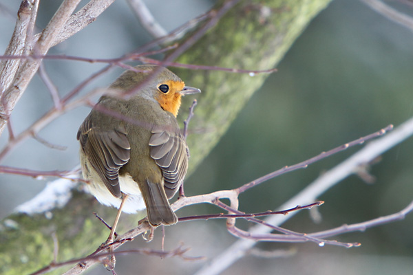 Ich kann Euch sagen, es ist furchtbar schwierig. Der Eichelhäher schreit schon, bevor ich ihn überhaupt entdeckt habe. Dann saß er auf einem Baum und die Bilder sind unscharf geworden. Das Licht ist eigentlich viel zu schlecht, aber ich wollte mich ein wenig einfotografieren, bevor ich in den Bayrischen Wald zum Fotokurs fahre. Hinzu kommt noch die bittere Kälte. Es ist ungefähr -8° C und ich muss ja stundenlang still stehen, damit in 5-10 Meter Entfernung sich die Vögel überhaupt an das Vogelhäuschen trauen.