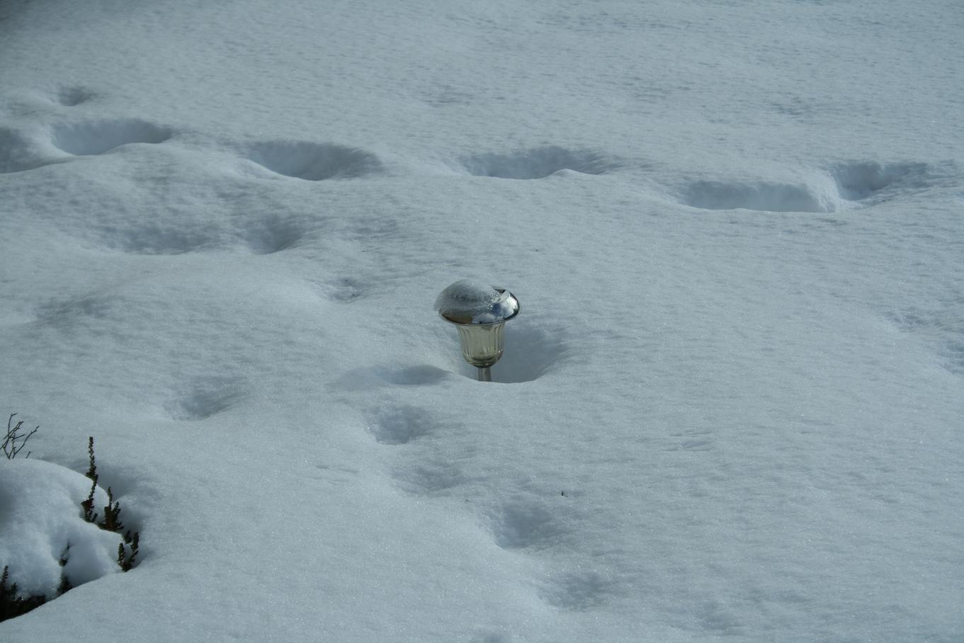 Auch der kleine See ist natürlich zu....Da bleiben nur die Fußspuren
