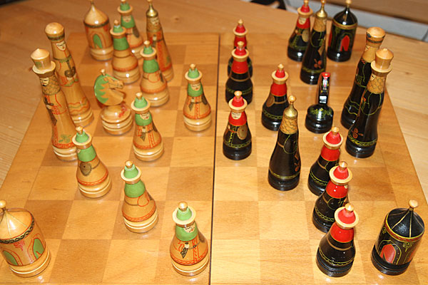Och, wir haben einige Schachspiele... Das vorherige mit den schwarzen und weißen Figuren war ja ein Reisespiel...