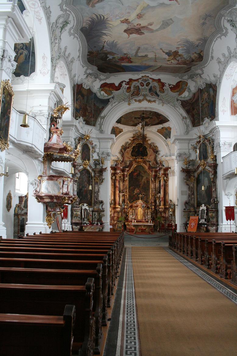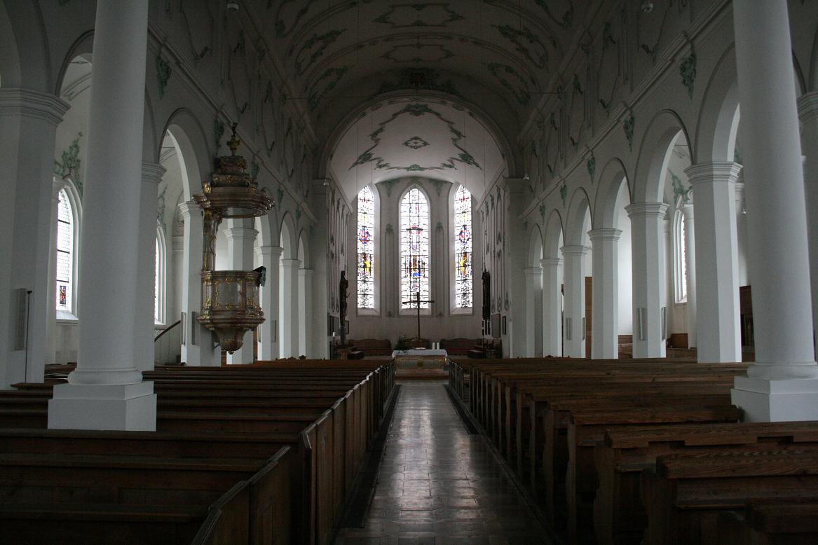 Ja, da stehen also die evangelische Kirche,St Stephan, und die katholilsche Kirche, "Unserer Lieben Frau", direkt neben einander. Von außen recht ähnlich, aber von innen gibt es enorme Unterschiede. Das erste Bild ist die evangelische Kirche - eher karg und sachlich.