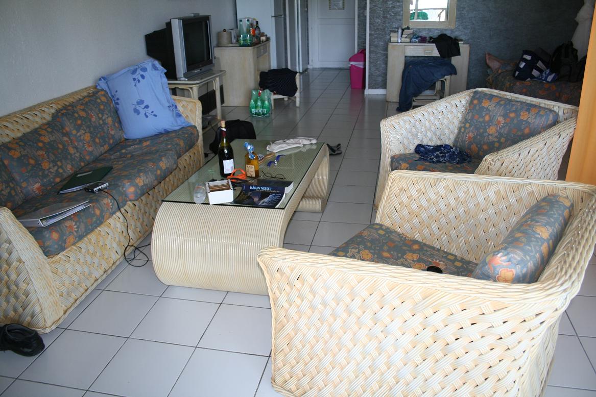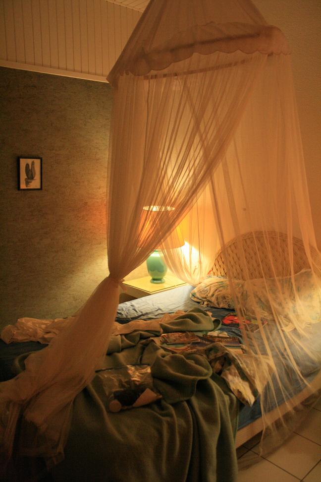 Unsere Vermieter wohnen neben uns und begrüßen uns sehr nett. Im Appartment liegen überall Blumen, es gibt etwas für das erste Frühstück und ein paar Getränke liegen im Kühlschrank.Das Appartment besteht aus einem großem Raum mit 2 Betten und einer Sitzecke. Die Betten sind optisch mit einem Vorhang abgetrennt. Das macht den Raum gemütlicher. Beide haben Mosquitonetze. Die Betten sind nicht sehr lang und für Jan stellen wir zur Verlängerung einen Sessel ans Bett. Da es nur eine Decke jeweils gibt, was ich bereits erwartet habe, haben wir noch einen Jugendherbergsschlafsack mit – so streiten wir uns nachts nicht um die Decke. das geht dann auch sehr gut. Wir fahren schnell noch zum Einkaufen – der Supermarkt ist nur wenige Kilometer entfernt und dort bekommt man alles. Da wir in der europäischen Gemeinschaft sind – wie wohnen im französischen Teil von St. Maarten, zahlen wir mit dem Euro. Die Autos haben hier normale französische Kennzeichen. Irgendwie schon komisch. Gegen 20.30 Uhr Ortszeit fallen uns die Augen zu. Bei Euch ist es jetzt 1.30 nachts. -