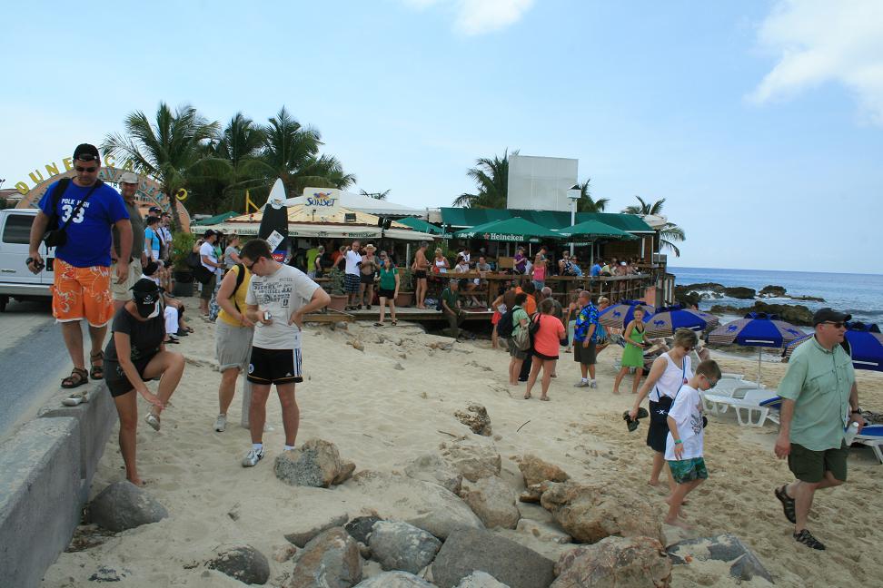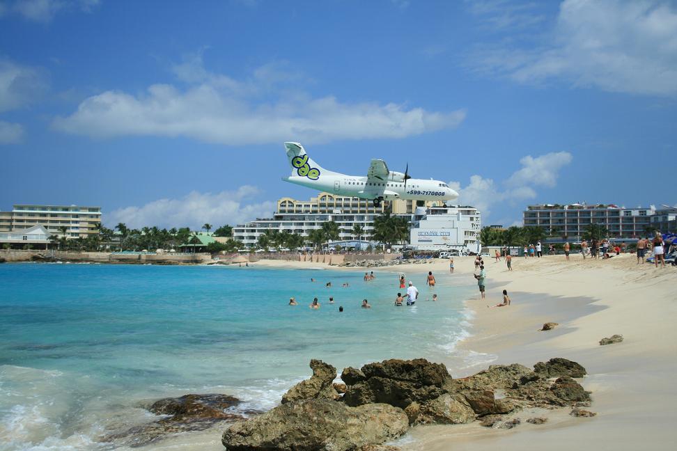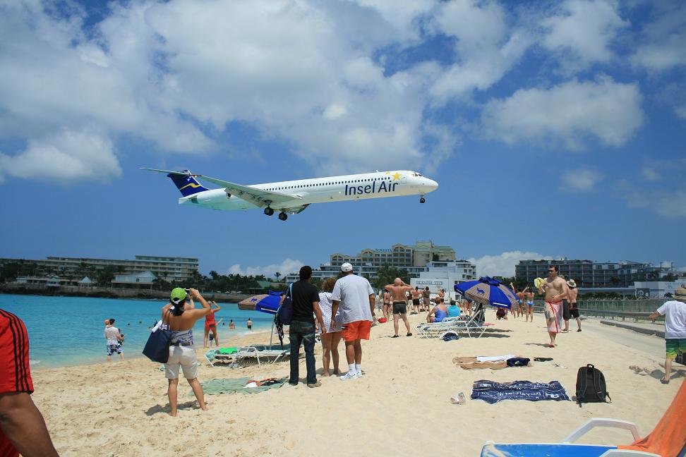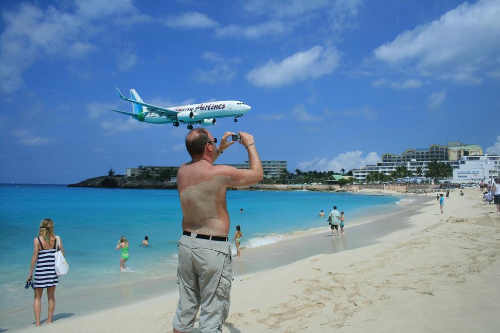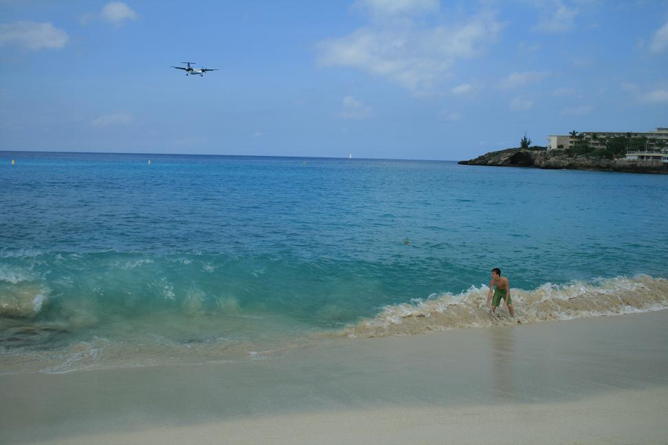 Wir setzen Okke am holländischen Teil liegenden Flughafen Juliana Airport ab. Landessprache ist übrigens in diesem Teil Englisch und die offizielle tatsächliche Währung der Dollar, obwohl eigentllich der Antillengulden, mit dem man auch noch bezahlen kann. Tatsächlich wird einem wohl auch alles in Euro umgerechnet. Im französischen Teil sind wir ja in der EU und bezahlen mit Euro.