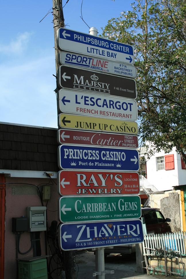 Wir fahren vom Flughafen nach Philippsburg, dem Hauptort, aber da ist noch tote Hose. Gegründet wurde die Stadt 1763 vom Holländer John Philips auf einer engen Landzunge zwischen der Bucht und der Lagune.