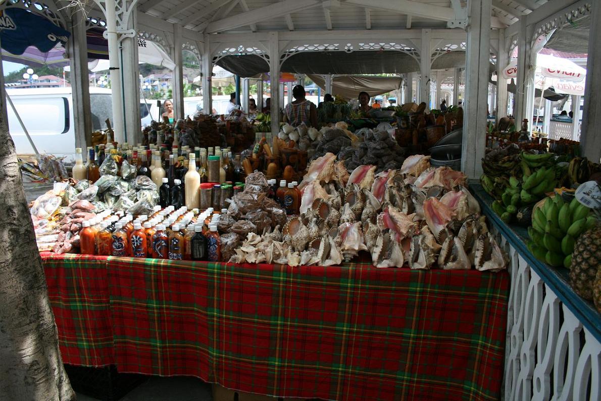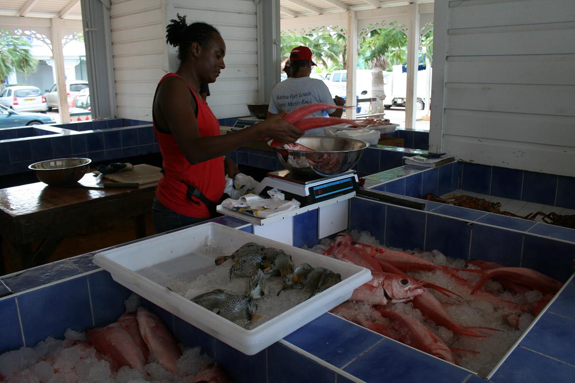 Heute, am Sonnabend, kommen sehr interssante Flieger und wir brechen gleich zum Flughafenstrand auf. Auf de Weg zum Strand kommen wir durch den französischen Hauptort Marigot und da ist heute Markt. -
