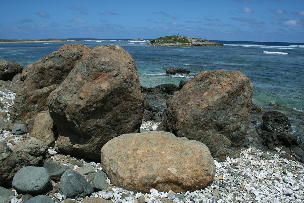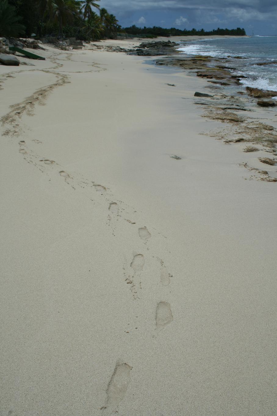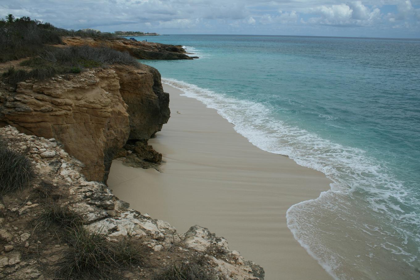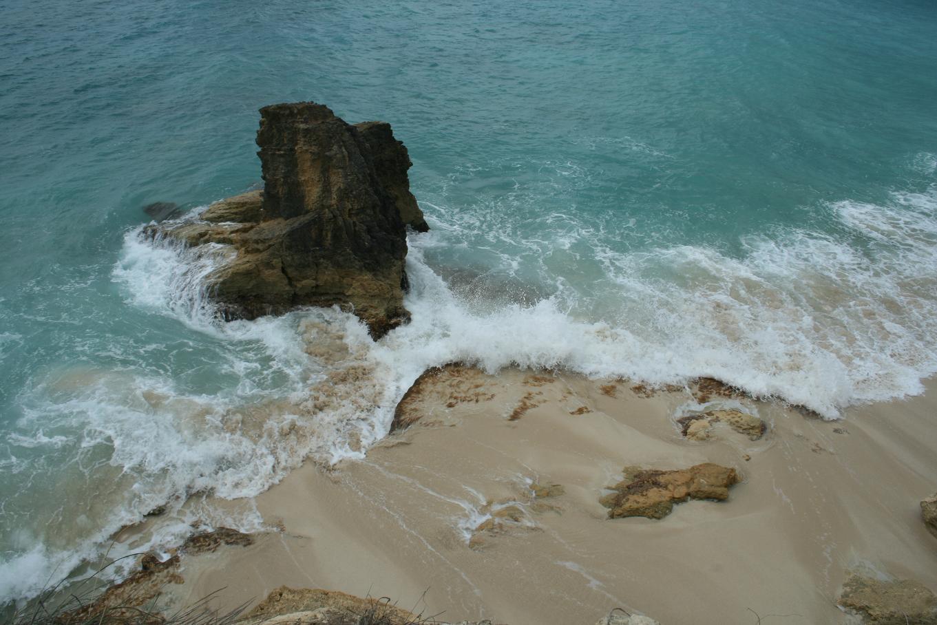 Die Stelle heißt Cupocoy Beach. Auf dem Land dahinter wird gerade ein Ungeheur von Bau hochgezogen. Und es ist sehr schwierig mit dem Fotografieren, denn mittendrinn ist ein Stück, wo FKK ist und ich will ja nicht die nackten Leute mit auf dem Bild haben. Also gehe ich an ihnen vorbei, um von dort aus die Felsen von oben zu fotografieren - dummerweise komme ich dann an eine Stelle, wo gerade zwei Männer was machen, was man nun auch nicht gerne auf seinen Urlaubsfotos hat....