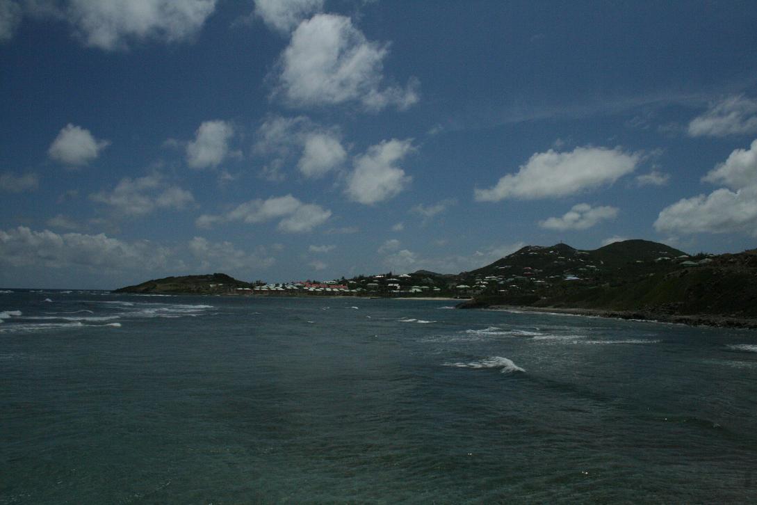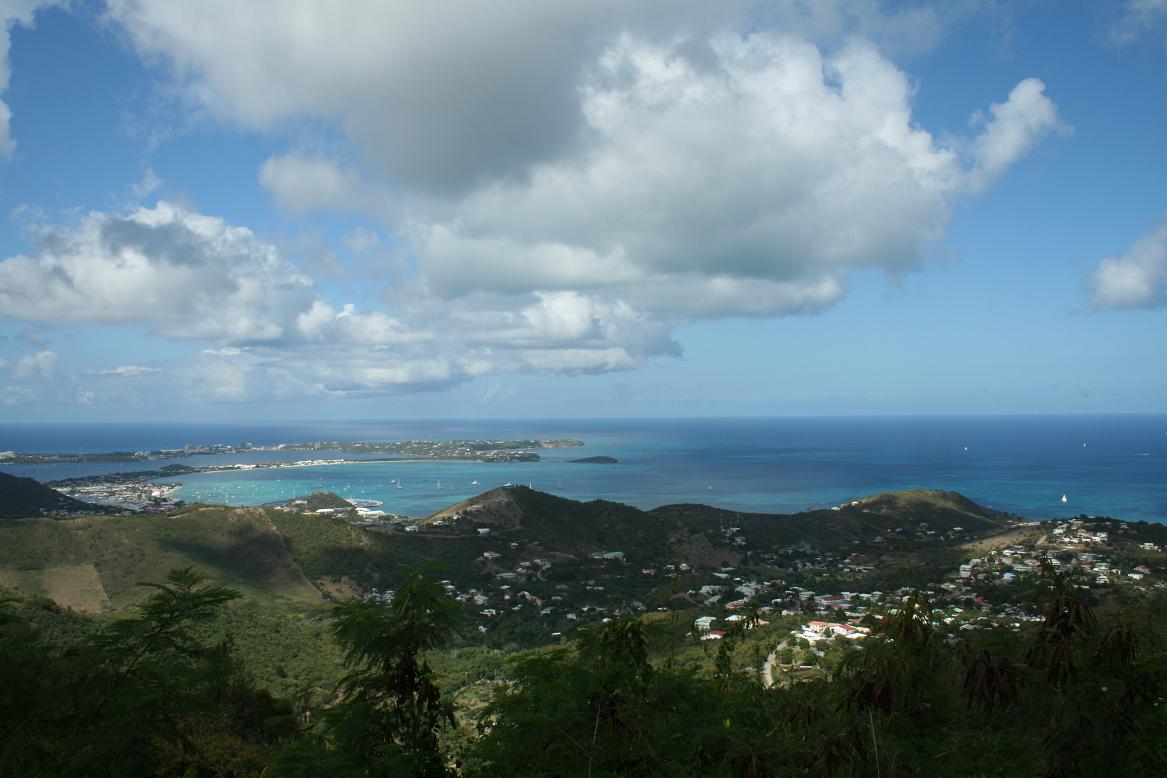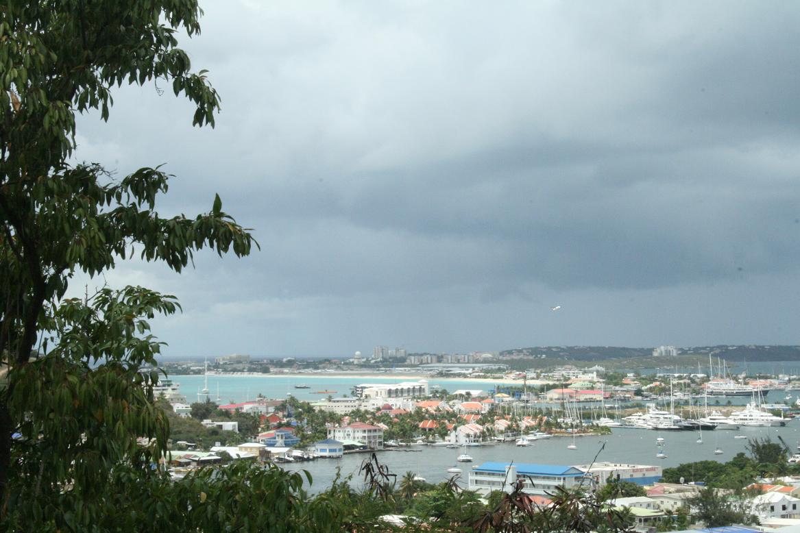 Man hat einen tollen Blick auf Marigot und am linken Ende auch auf den Flughafen -