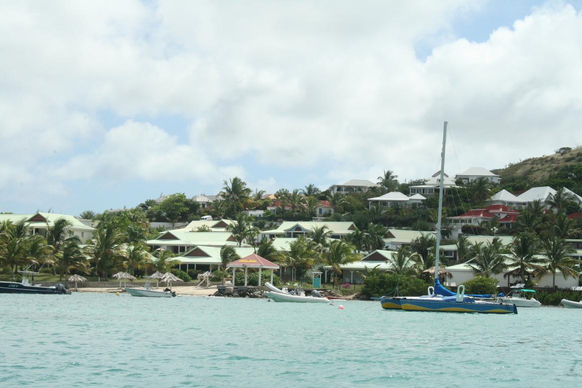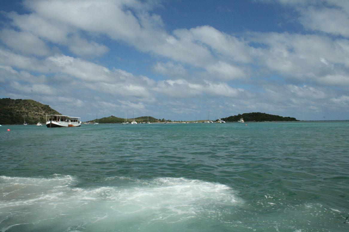 Auf Pinel Island sind keine WOhnhäuser. Das Boot landet an an einer Seite, die schön angelegt ist mit einem gelben Strand, Palmen, netten Hütten mit Restaurant. An anderen Stellen der Insel hat man den Strand fast für sich alleine. Wir gehen auf die andere Seite