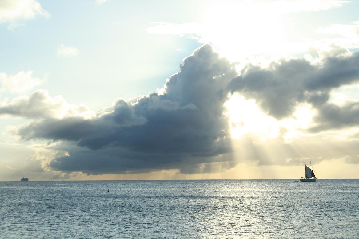 Und dann machen wir es uns am Strand gemütlich und gönnen uns für 5 US-Dollar einen SOnnenschirm -