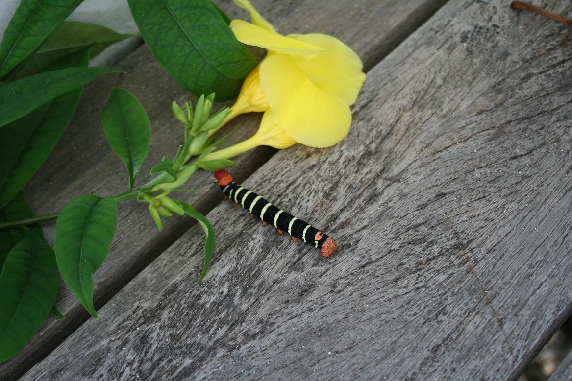 Heute begrüßt uns zum Frühstück eine bunte Riesenraupe.