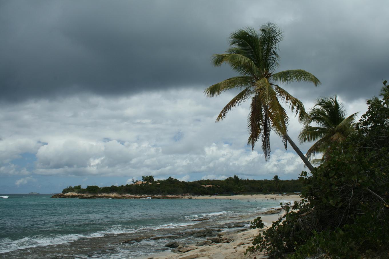 Durch ein Gebiet, von dem man sagen könnte, hier gibt es keine Grundstücke sondern nur Ländereien, fahren wir und finden mittendrin einen traumhaften Strand, Plum Bay -