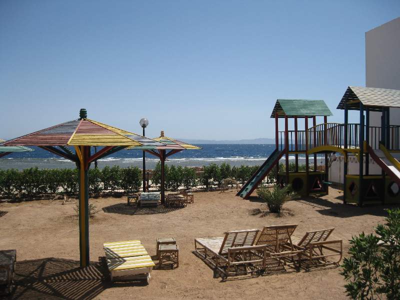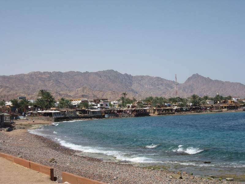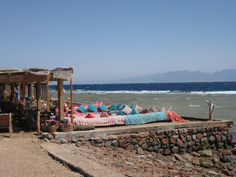 Ansonsten ist es hier sehr nett - nicht überwältigend, aber für ein paar Tage durchaus entspannend! Dahab besteht hauptsächlich aus einer Strandpromenade, an denen sich ein Restaurant an das nächste reiht. Direkt davor das Meer, dahinter entsprechend Verkaufsstände für alle möglichen Souveniers und dann die Hotels. Der Strand zieht sich über Kilometer, is aber nicht zum Liegen geeignet - das Riff liegt direkt davor. Das heißt, beiFnlut geht das Wasser bis zur Promenade, bei Ebbe kann man Muscheln sammeln, läuft aber über Korallen, Steine, etc, so da Strandschuhe unerläßlich sind