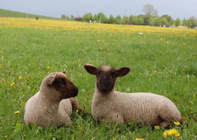 sie sind geschoren und die Lämmer sind auch schon ein paar Tage länger auf der Welt .